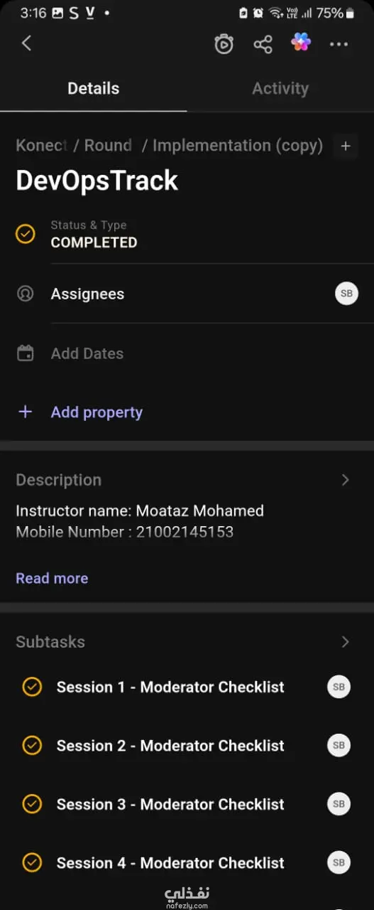 كنت مسؤوله في الدوره الاولي و التالته لل internship عن ال interns في ال tracks الي انا ماسكاها من حيث اخد الغياب و تسليم المهام و بعت ايميلات warning في حالات الاهمال و ايميلات تحفيزية في حالات الاتقان و مسؤؤله عن اي مشكله تواجههم هما و ال instructor الي كان بيشرحلهم ال sessions و تظبيط المواعيد بينهم و كتابة تقارير عند الحاجه و كان فيه check list لكل session علي click up علشان نتاكد اننا خلصنا كل المطلوب لل session دي .