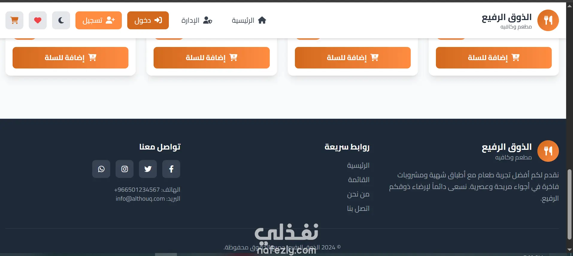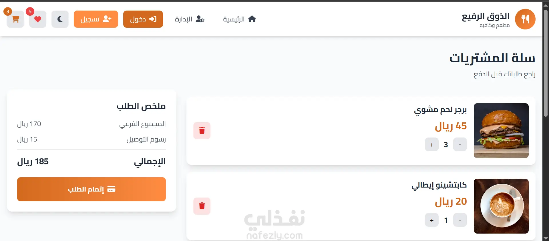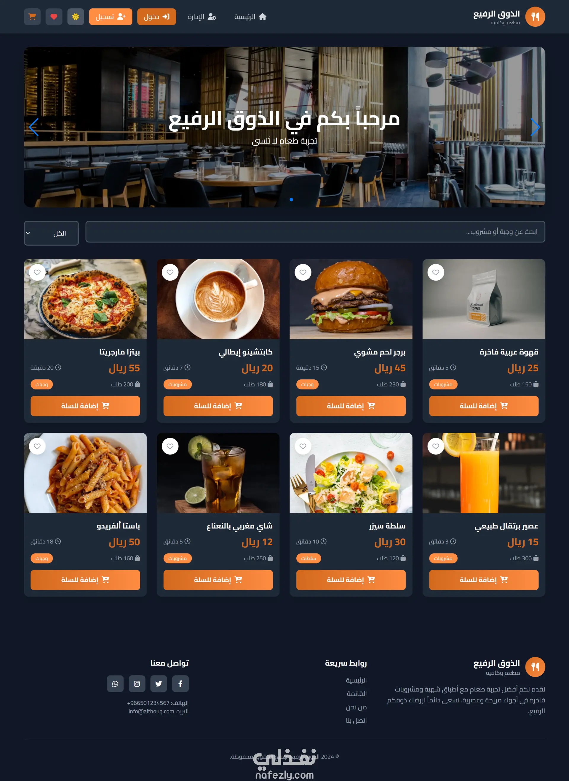 نظرة عامة على المشروع قمت بتطوير نظام متكامل لإدارة المطاعم من الصفر باستخدام أحدث التقنيات، حيث يدمج النظام بين واجهة مستخدم جذابة وسهلة الاستخدام مع إمكانيات إدارية متقدمة تلبي احتياجات المطاعم الحديثة. ️ التقنيات المستخدمة Frontend: HTML5, CSS3, JavaScript, Bootstrap 5 Design Patterns: Repository Pattern, Dependency Injection المميزات الرئيسية نظام آمن للمستخدمين تسجيل دخول آمن مع خاصية "تذكرني" إدارة الصلاحيات (مسؤول - مستخدم عادي) حماية كلمات المرور باستخدام التشفير جلسات مستخدم آمنة ️ إدارة القائمة والمنتجات تصنيف المنتجات في فئات منظمة (حلويات - مشروبات - أطباق رئيسية) عرض المنتجات مع صور جذابة وأسعار واضحة إدارة المخزون والكميات المتاحة أوقات تقديرية للتحضير لكل منتج واجهة مستخدم متجاوبة تصميم عصري وجذاب يتناسب مع المطاعم متوافق مع جميع أحجام الشاشات (موبايل - تابلت - كمبيوتر) تجربة مستخدم سلسة وسريعة ألوان متناسقة وخطوط واضحة إدارة الطلبات والمبيعات نظام متكامل لمتابعة الطلبات تقارير المبيعات والإيرادات تتبع حالة الطلبات في الوقت الفعلي إشعارات فورية للتحديثات