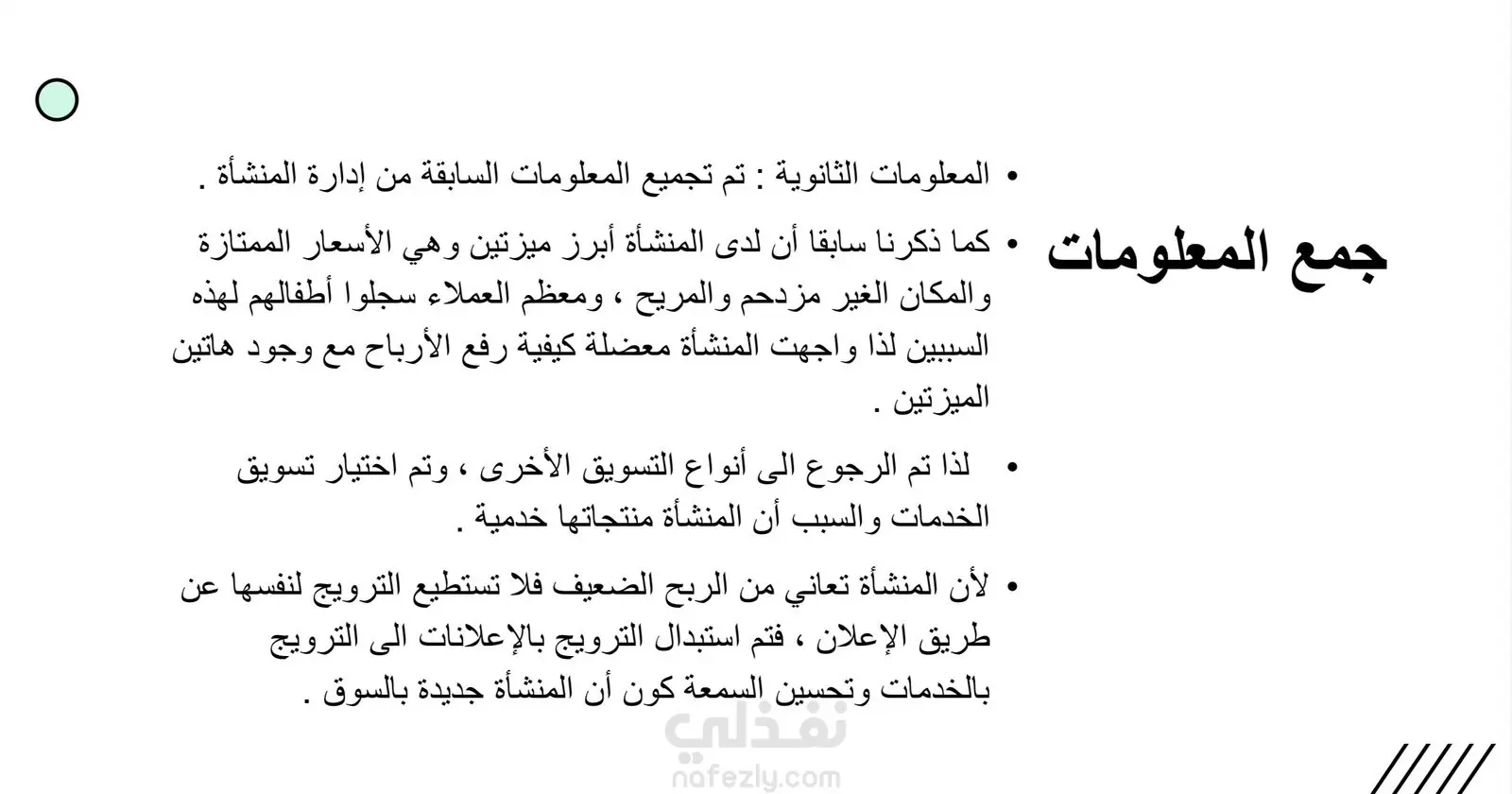 خطة استراتيجية تسويقية(مبسطة) لاحدى المنشآت