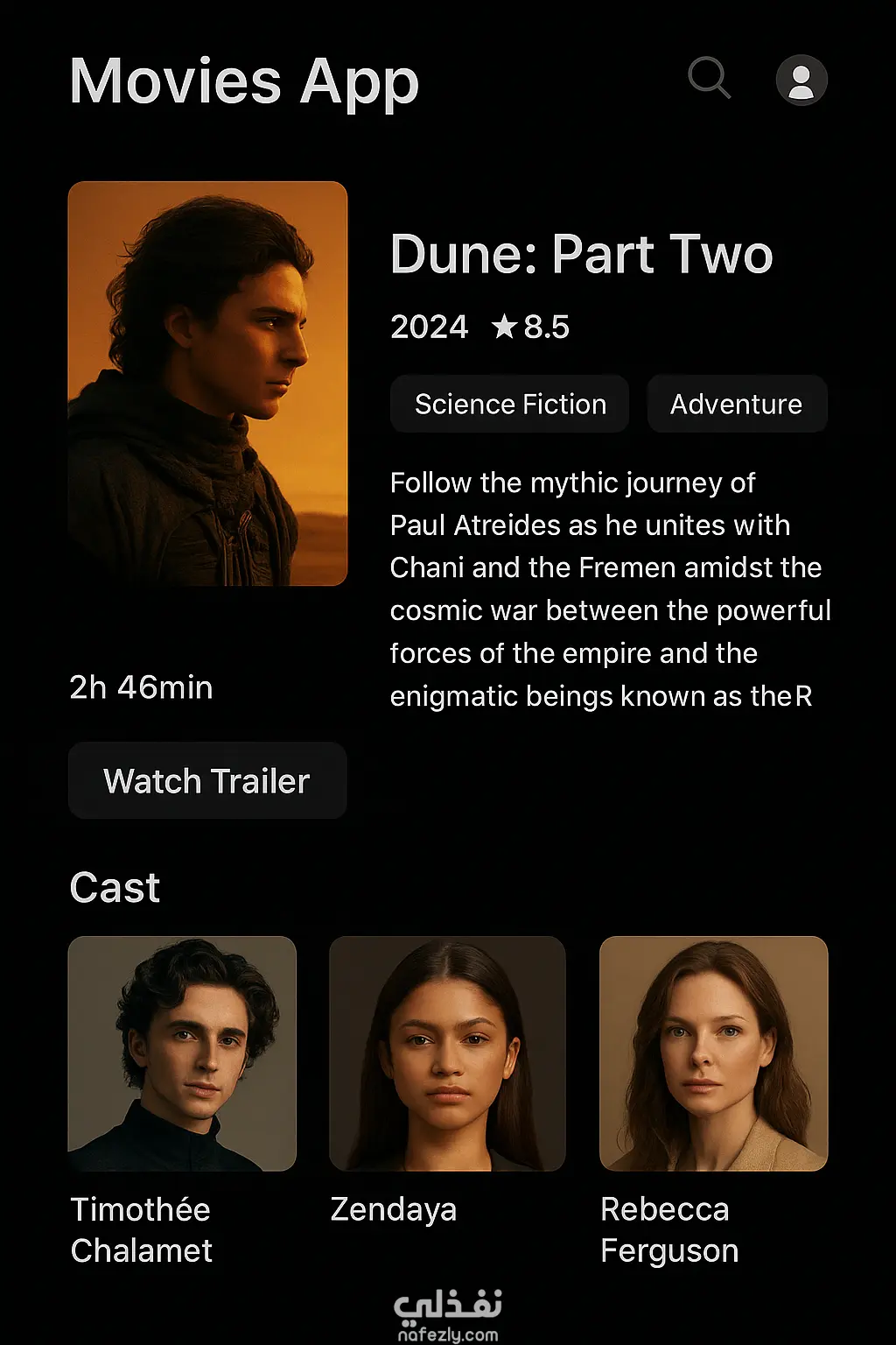 نموذج لتطبيق أفلام تم تطويره باستخدام Flutter، يعرض قائمة الأفلام بطريقة جذابة مع إمكانية فتح صفحة تفاصيل لكل فيلم تشمل الصورة، الوصف، والتقييم. التطبيق يدعم: عرض قائمة الأفلام صفحة تفاصيل لكل فيلم البحث والتصفح ربط التطبيق بـ API خارجي (مثل TMDB) كود منظم وسهل التعديل والتطوير