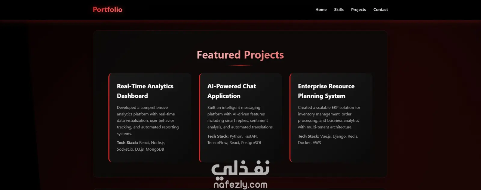 تصميم موقع بورتفوليو احترافي متحرك بألوان عصرية وتأثيرات بصرية مبهرة