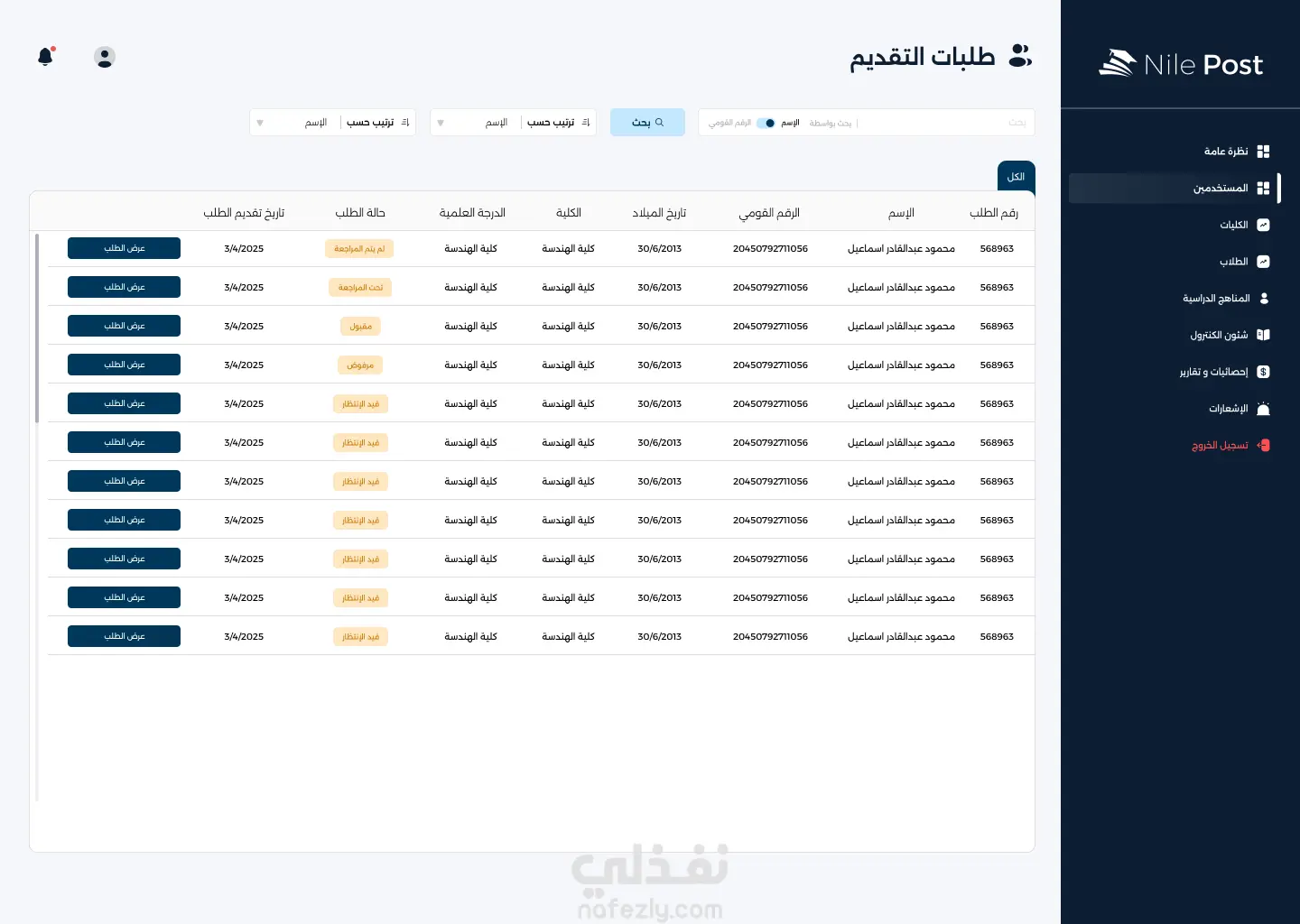 تماشياً مع الأهداف الاستراتيجية للجامعات والمعاهد المصرية في تطوير شبكات معلومات قوية تربط بين مختلف الأقسام الداخلية والمؤسسات الخارجية مثل المجلس الأعلى للجامعات، أصبح التحول الرقمي ركناً أساسياً في تحديث قطاع التعليم العالي. إذ تشكّل هذه البنى التحتية الأساس لخدمات إلكترونية متقدمة تقدّمها مراكز تكنولوجيا المعلومات على المستويين الوطني والدولي. تماشياً مع الأهداف الاستراتيجية للجامعات والمعاهد المصرية في تطوير شبكات معلومات قوية تربط بين مختلف الأقسام الداخلية والمؤسسات الخارجية مثل المجلس الأعلى للجامعات، أصبح التحول الرقمي ركناً أساسياً في تحديث قطاع التعليم العالي. إذ تشكّل هذه البنى التحتية الأساس لخدمات إلكترونية متقدمة تقدّمها مراكز تكنولوجيا المعلومات على المستويين الوطني والدولي. ومع مرور الوقت ظهرت حاجة ملحّة لتطوير أنظمة إلكترونية تتيح تبادل البيانات بكفاءة بين إدارات الدراسات العليا على مستوى الكليات والإدارات المركزية للجامعة. وتشمل هذه الحاجة إدارة البيانات وإصدار المستندات الرسمية المطلوبة خلال رحلة الطالب في مرحلة الدراسات العليا—بدءًا من التقديم وحتى التخرج. استجابةً لهذا الاحتياج، تم تطوير "Nile Post" كمنصة ويب متكاملة (Full-Stack) مخصّصة للتسجيل وإدارة شؤون الدراسات العليا. وتعالج المنصة تحديات المعاملات اليدوية، وتشتت المعلومات، وغياب الأتمتة، من خلال نظام آمن وقابل للتوسع ومبني بطريقة معيارية تعزز كفاءة العمليات الإدارية. تم تصميم النظام ليعمل ضمن منظومة أكاديمية أكبر، مع إمكانية توسيعه في مراحل لاحقة ليتكامل مع الخدمات السحابية والمستودعات الأكاديمية الوطنية وبوابات الكليات. وتمثل بنيته الأساسية قاعدة متينة لتطوير الجيل القادم من الخدمات الأكاديمية الإلكترونية في مصر ومع مرور الوقت ظهرت حاجة ملحّة لتطوير أنظمة إلكترونية تتيح تبادل البيانات بكفاءة بين إدارات الدراسات العليا على مستوى الكليات والإدارات المركزية للجامعة. وتشمل هذه الحاجة إدارة البيانات وإصدار المستندات الرسمية المطلوبة خلال رحلة الطالب في مرحلة الدراسات العليا—بدءًا من التقديم وحتى التخرج.
