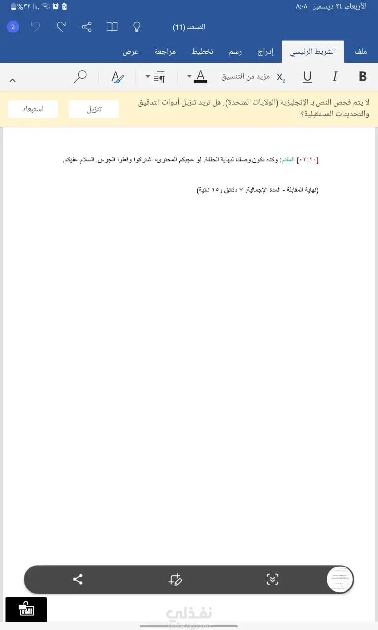 "قمت بتفريغ صوتي دقيق ومنسق لمقابلة مدتها 7 دقائق ضمن بودكاست بعنوان 'رحلة الفريلانسر'.