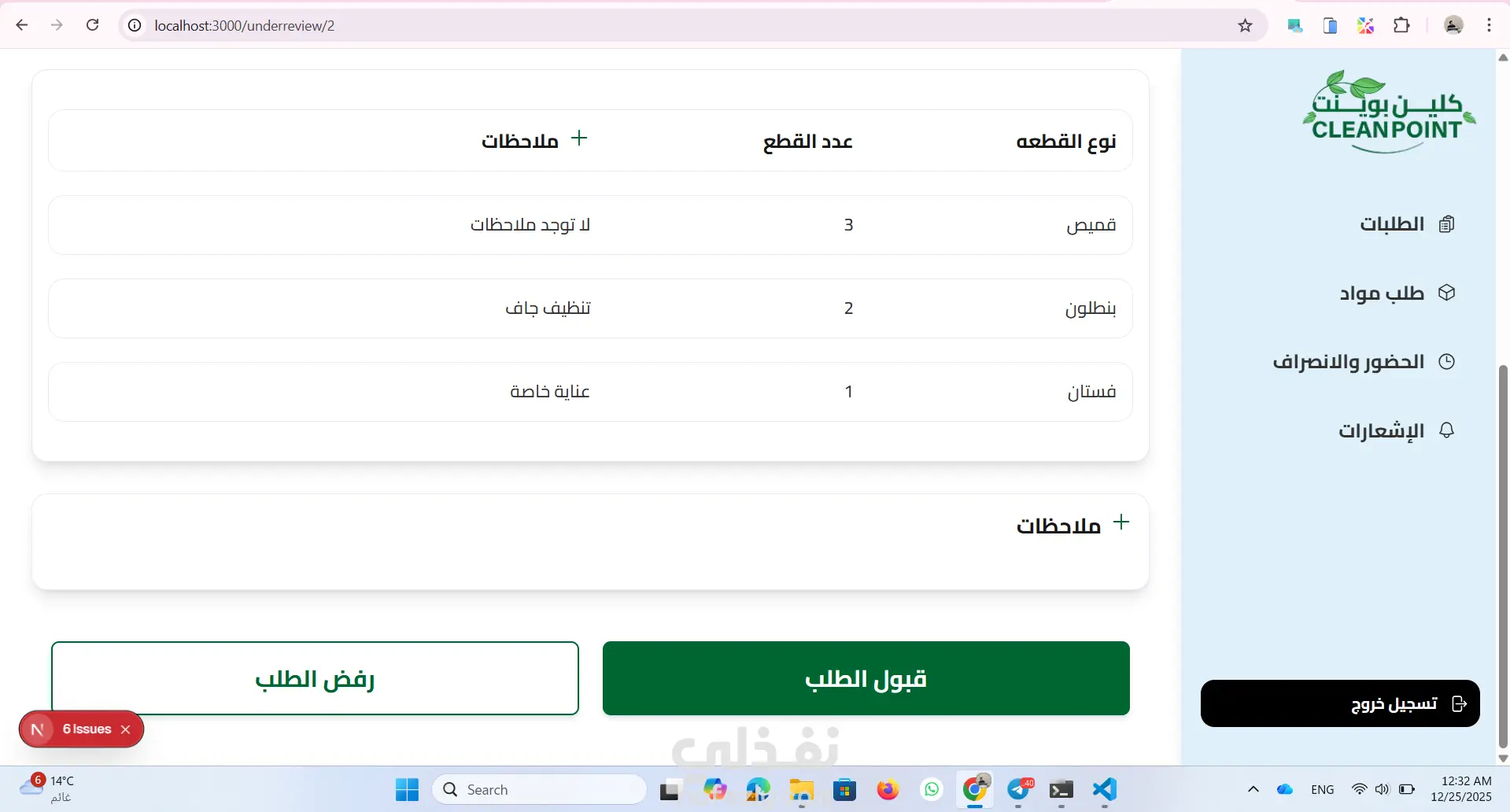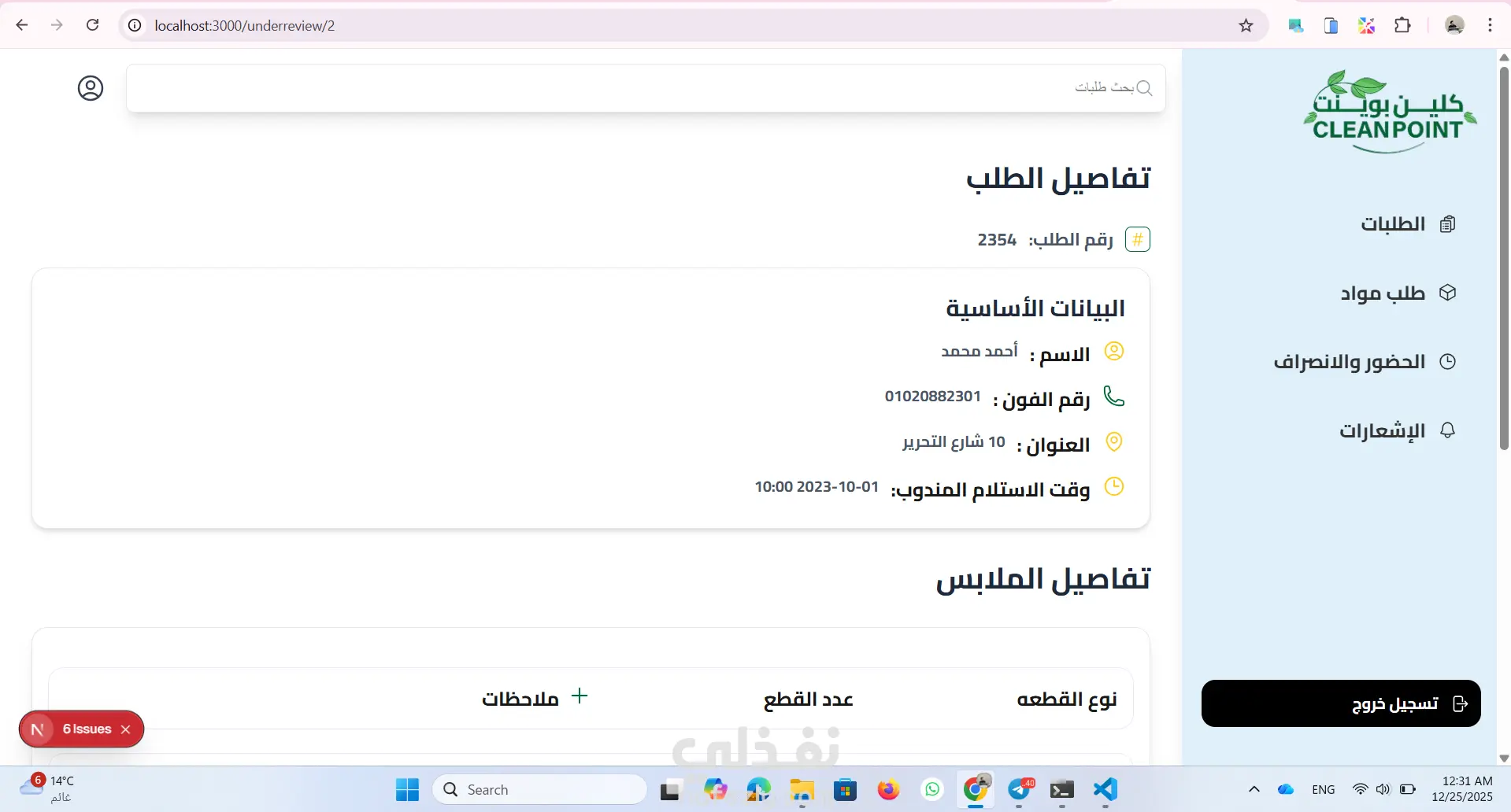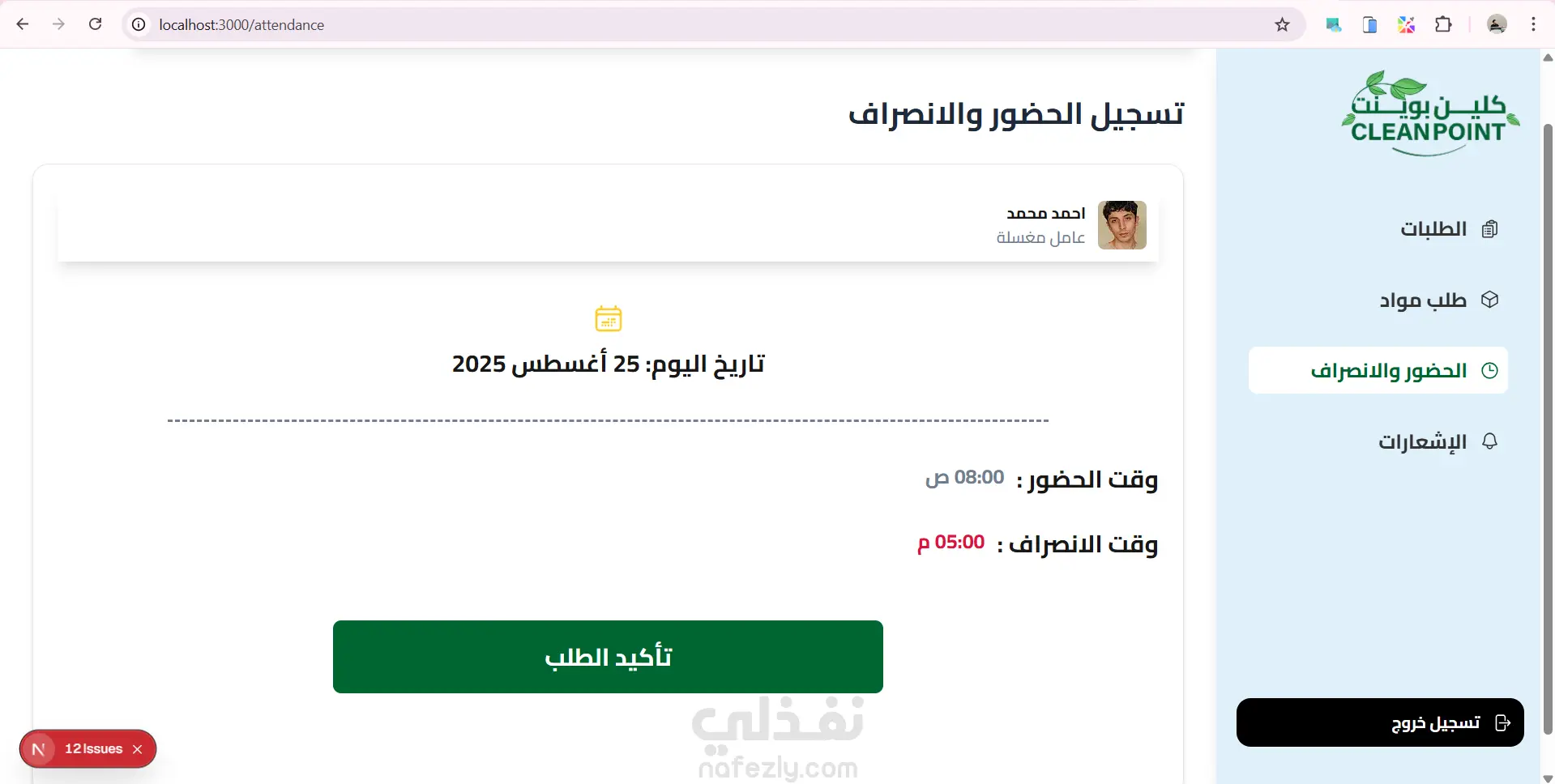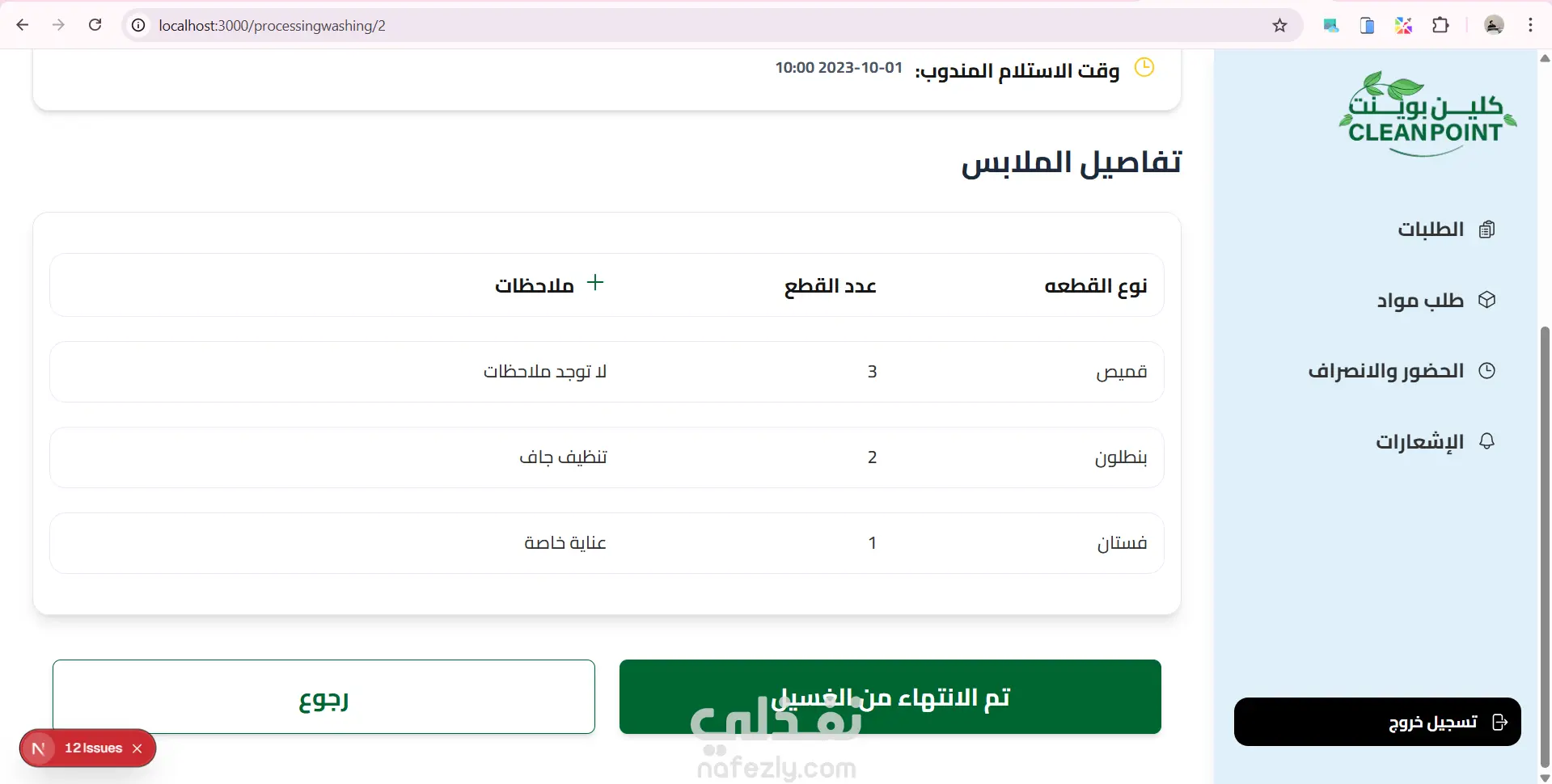 موقع داشبورد ل ادارة مغسلة من خلال متابة الطلبات الجديدة والطلبات قيد الغسيل والطلبات اللى انتهى غسيلها والطلبات الجاهزة للاستلام ومتابعة المواد المطلوبة للغسيل وارسال الفاتورة للعميل وكمان نظام حضور وانصراف للعمال استخدمت react.js and next.js tailwind css for design axios for fetch api