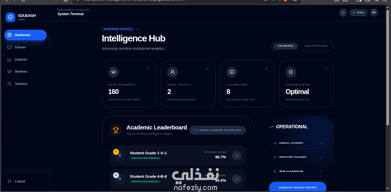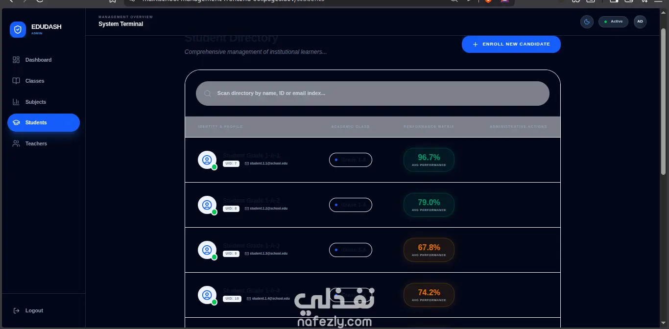 This is a robust and high-performance School Management System API built with modern web technologies. It allows for the comprehensive management of educational structures, including schools, classrooms, subjects, teachers, students, and grades.