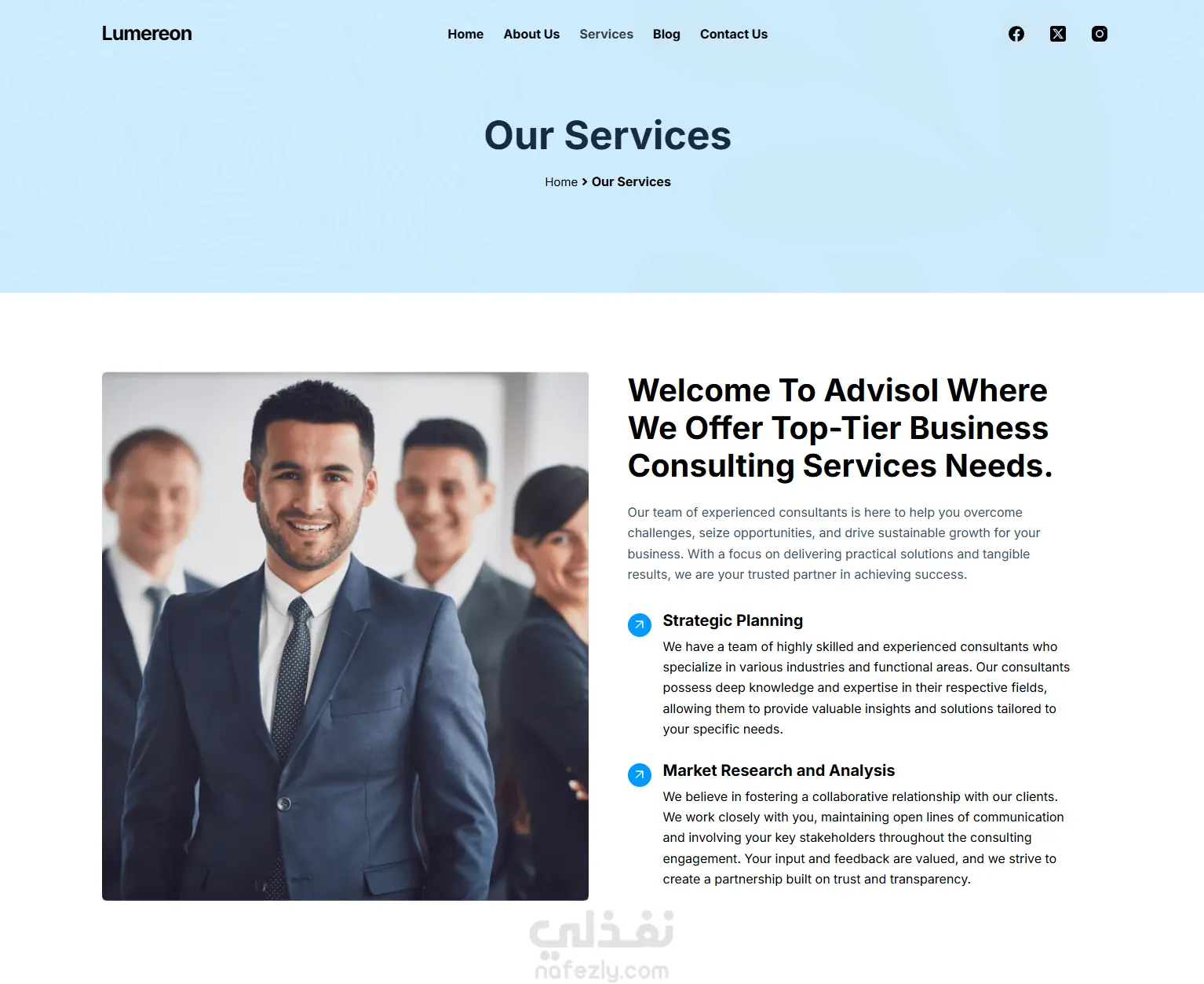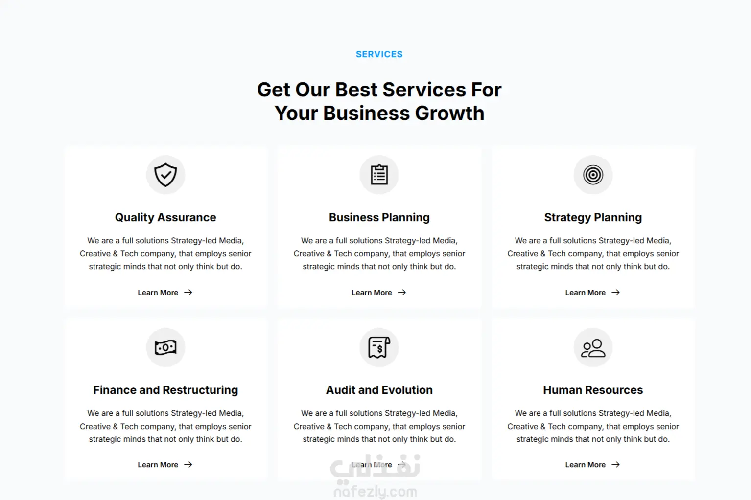 تطوير موقع تعريفي متكامل لشركة خدمات أعمال
