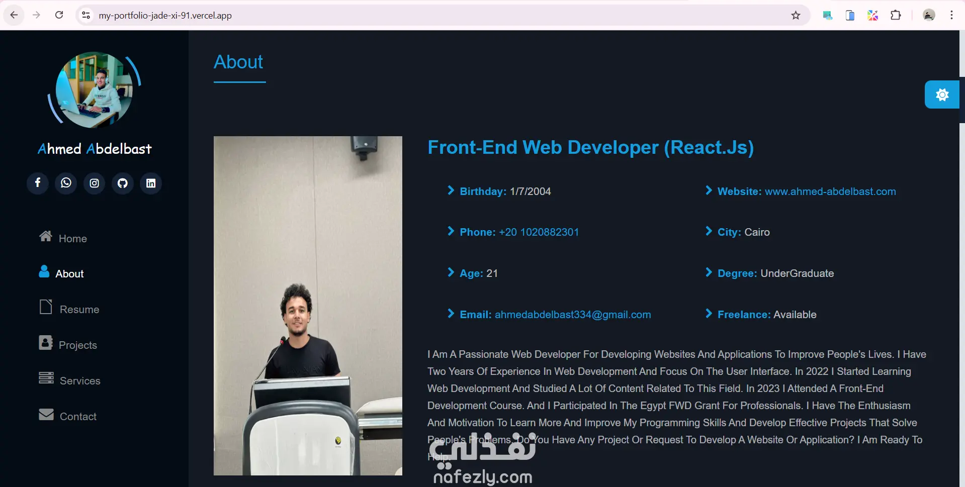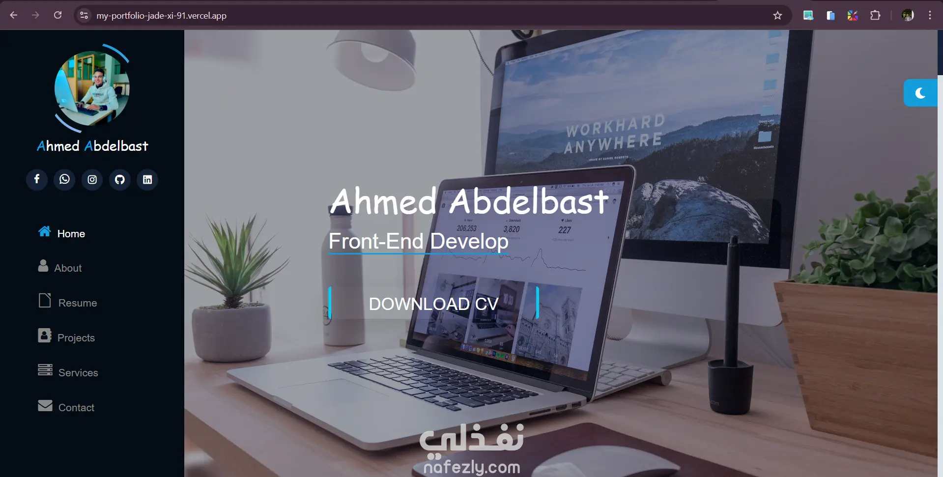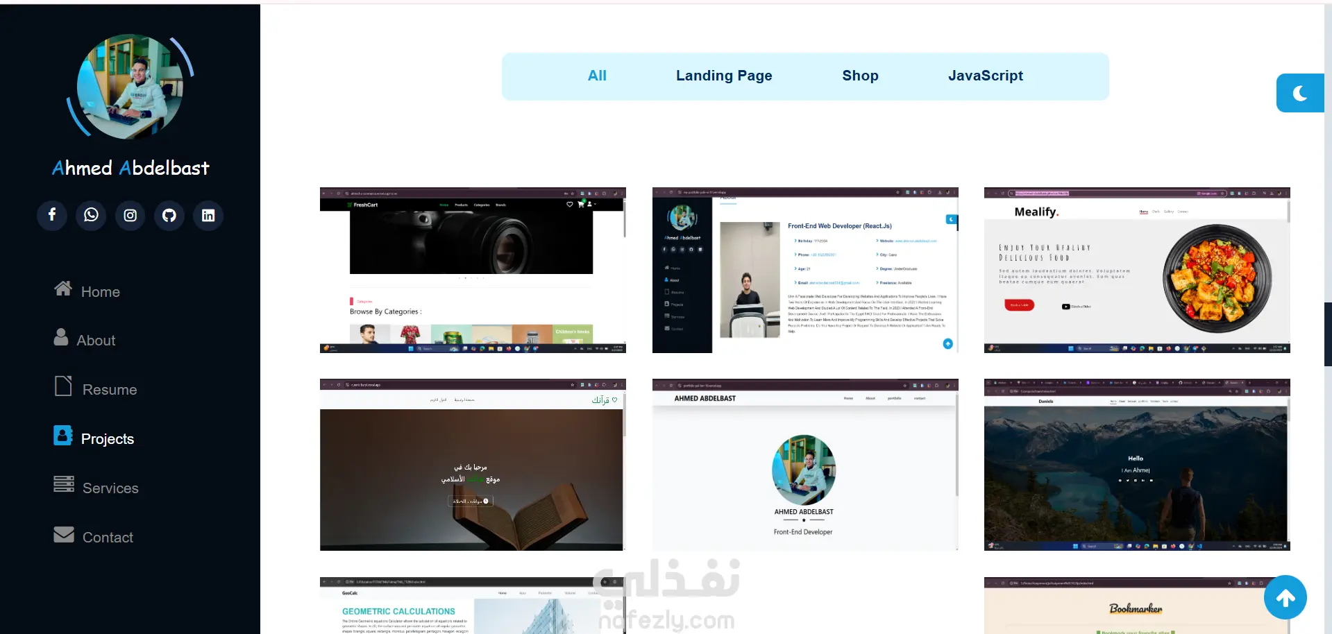 موقع بورتفوليو شخصى لعرض اعمالى وخبرتى فى مجال Front-end Developer موقع متجاوب مع جميع الاجهزة استخدمت : Html Css Javascript Bootstrap GSAP Animations