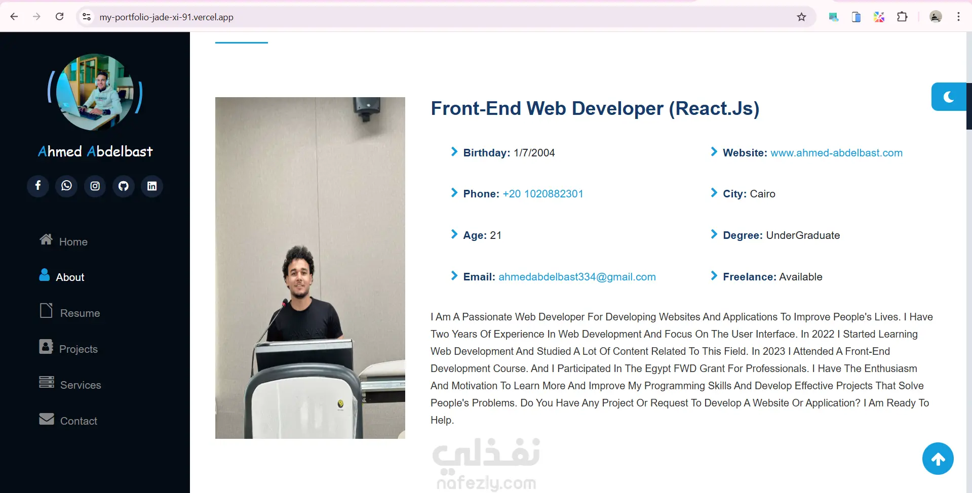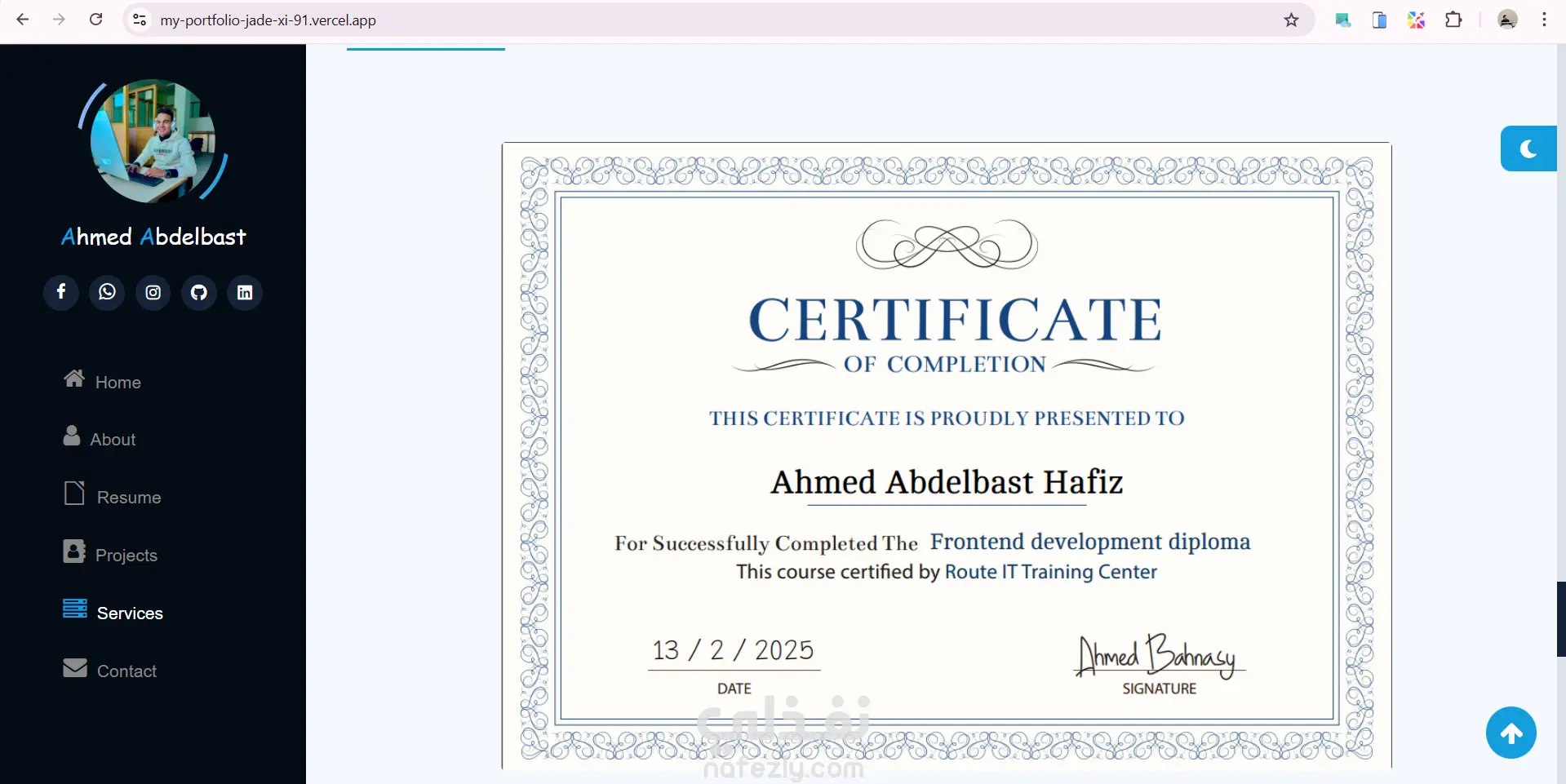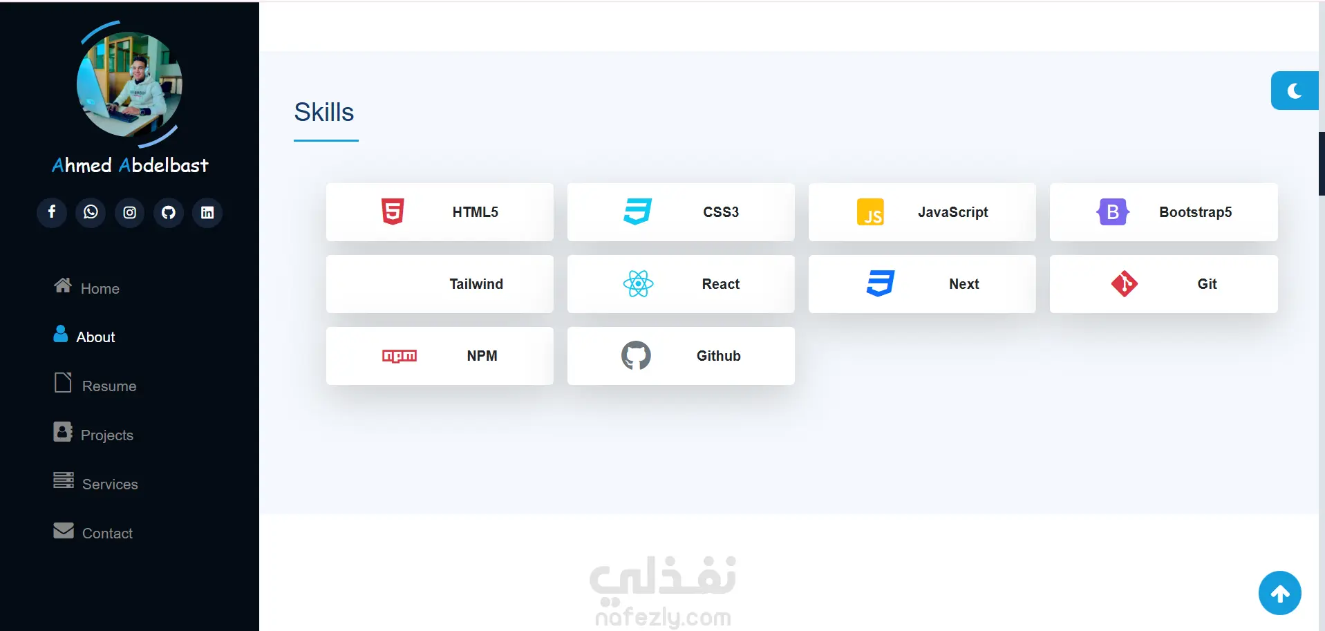 موقع بورتفوليو شخصى لعرض اعمالى وخبرتى فى مجال Front-end Developer موقع متجاوب مع جميع الاجهزة استخدمت : Html Css Javascript Bootstrap GSAP Animations