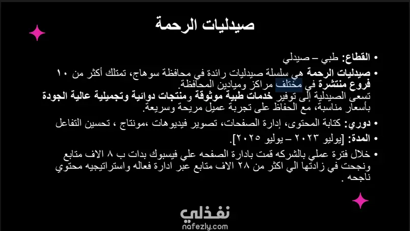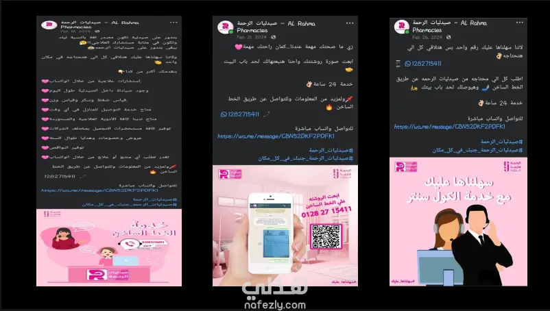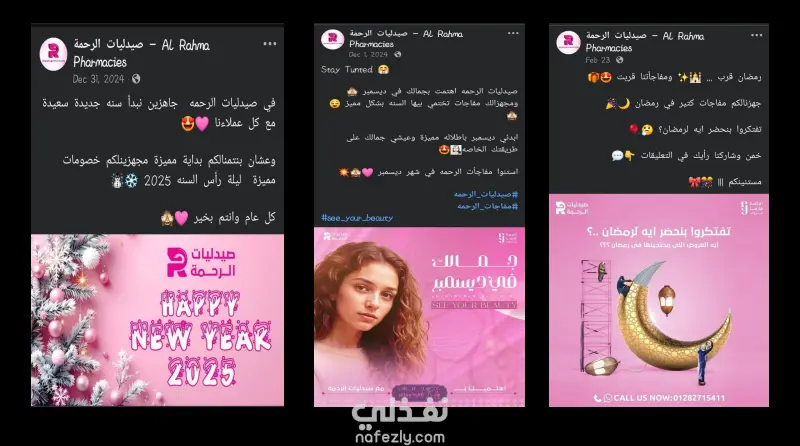 إدارة محتوى سوشيال ميديا – صيدليات الرحمة لشركه الرحمه فارما جروب بسوهاج