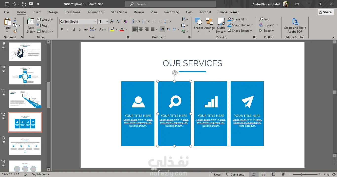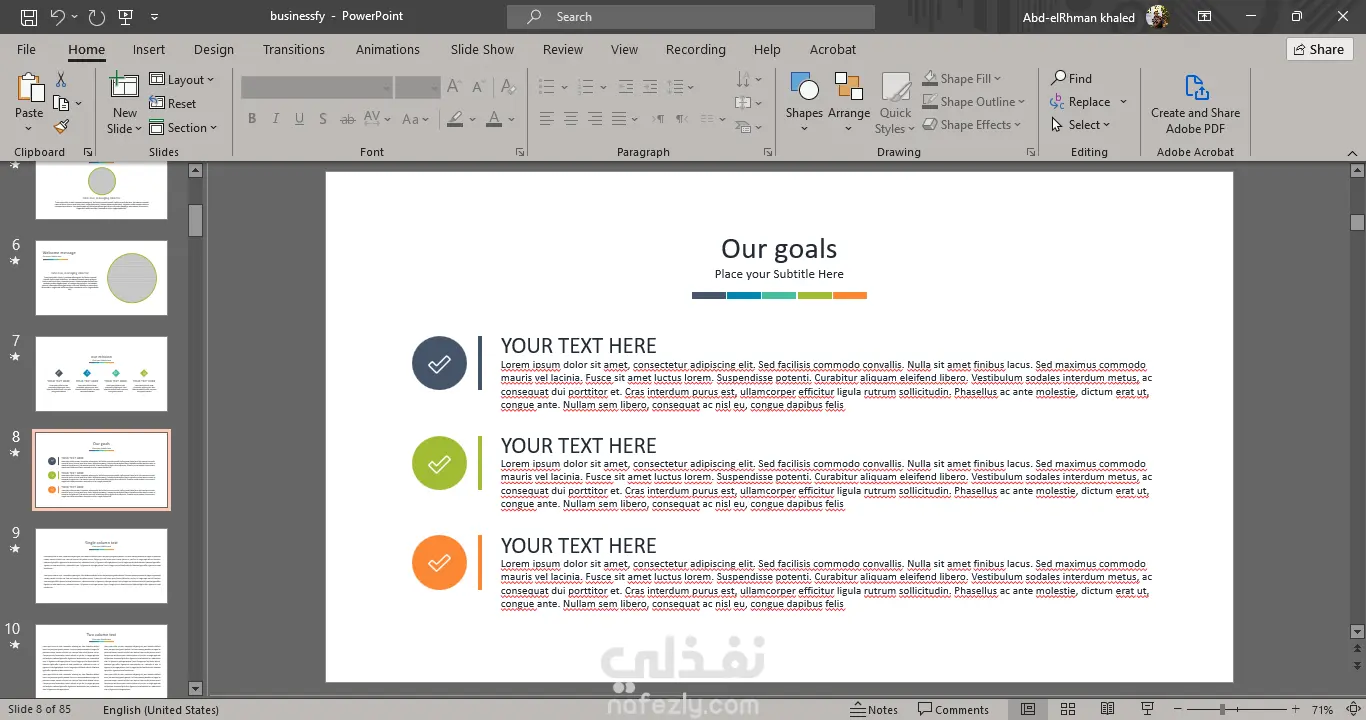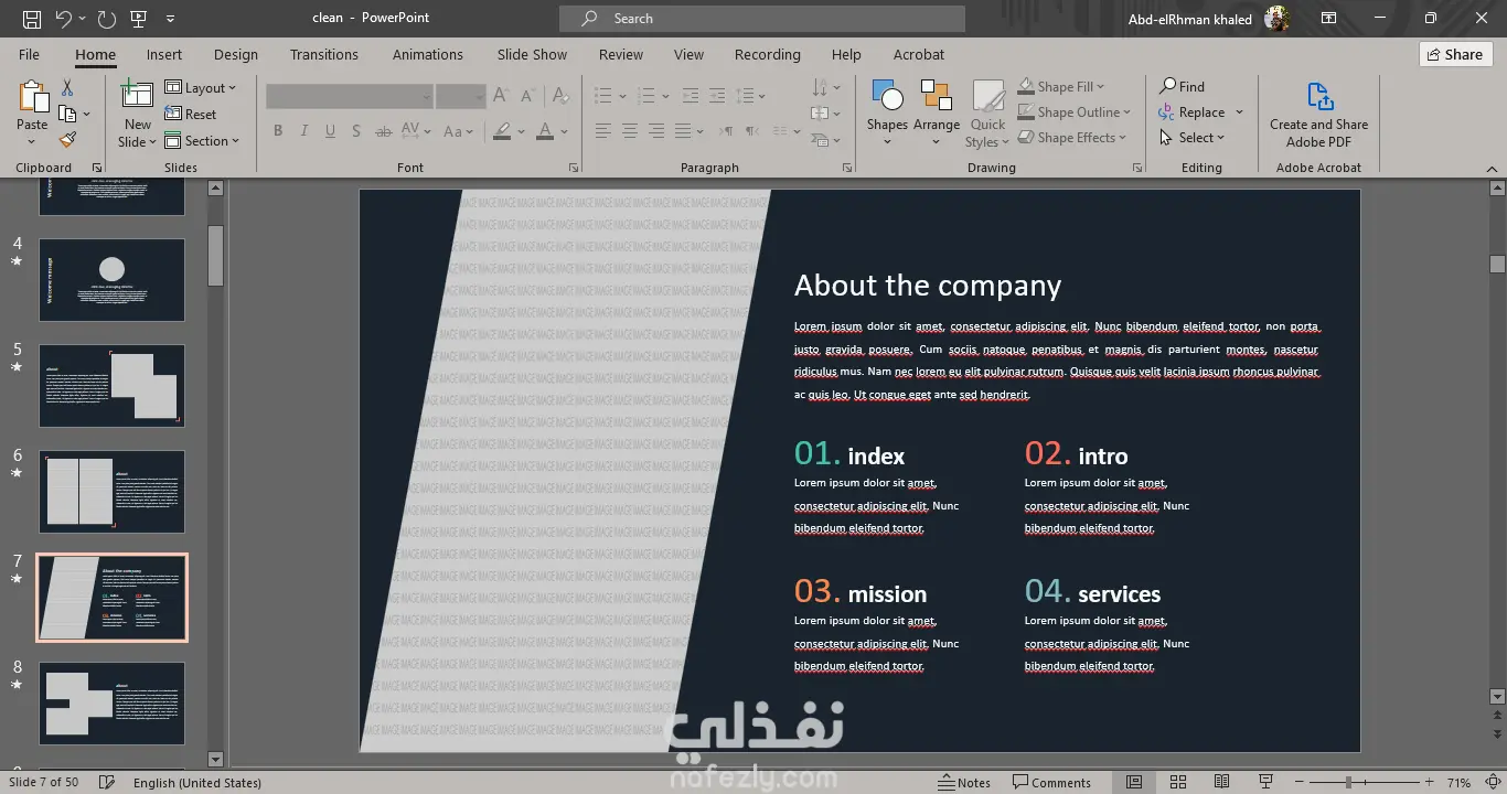 التسليم بصيغ متعددة: ملف مفتوح المصدر (PPTX) + ملف PDF جاهز للطباعة أو العرض.
