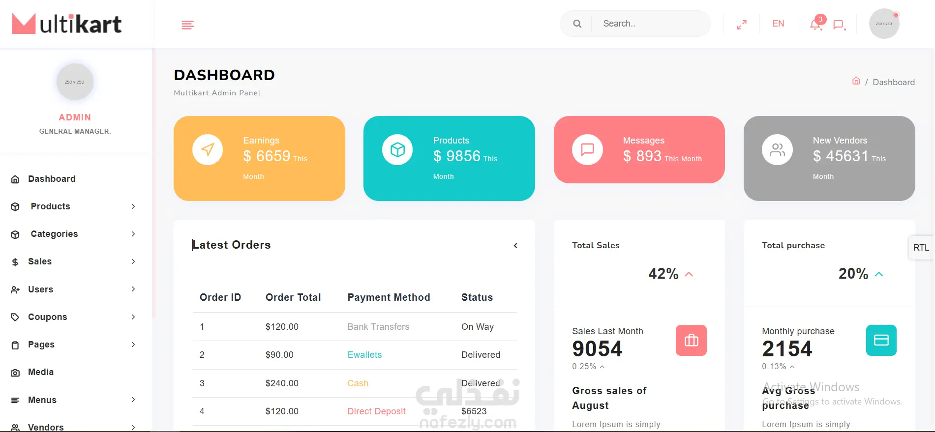 تتضمن لوحة التحكم واجهات مخصصة لإدارة كافة جوانب المتجر بدقة وسهولة: