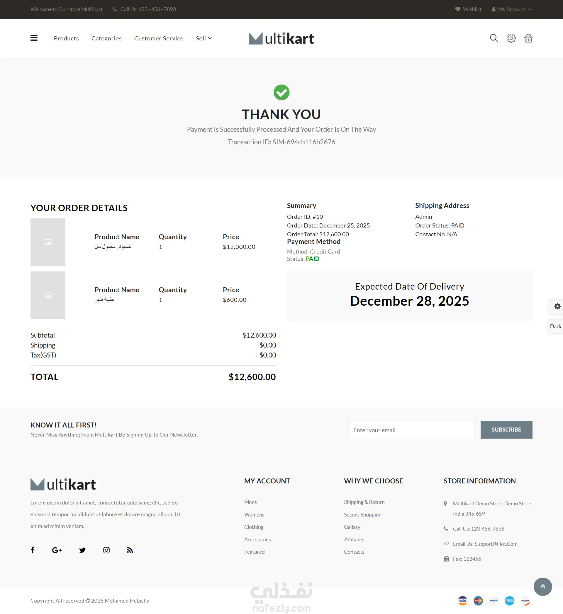 نجاح عملية الدفع (payment success): واجهة تؤكد للعميل إتمام الطلب بنجاح وتزوده برقم التتبع، مما يعزز المصداقية.
