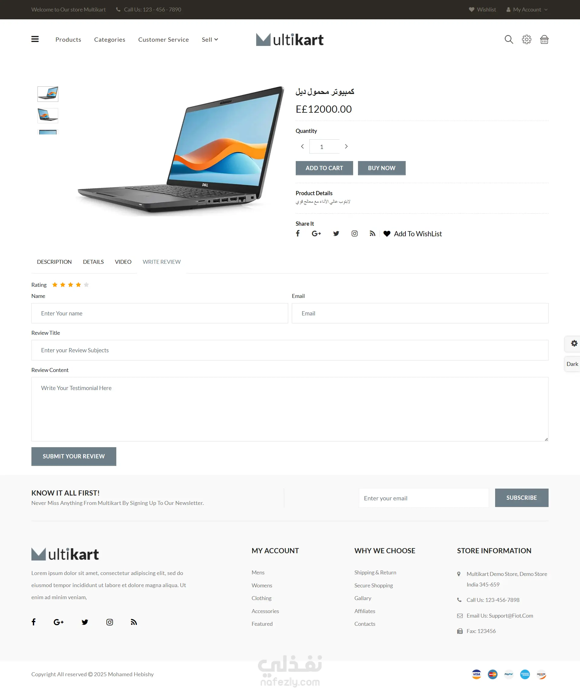 صفحة تفاصيل المنتج (product Details): عرض كامل لصور المنتج بوضوح، المواصفات التقنية، وسعره، لتعزيز قرار الشراء.