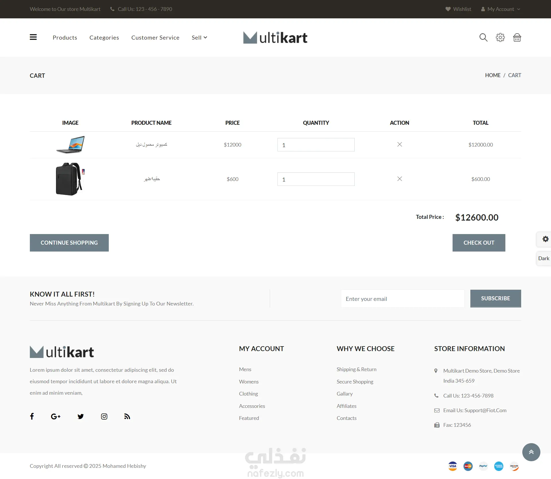 سلة المشتريات (shopping cart): واجهة تفاعلية تتيح للعميل مراجعة مشترياته، تعديل الكميات، والتأكد من طلبه قبل الدفع.