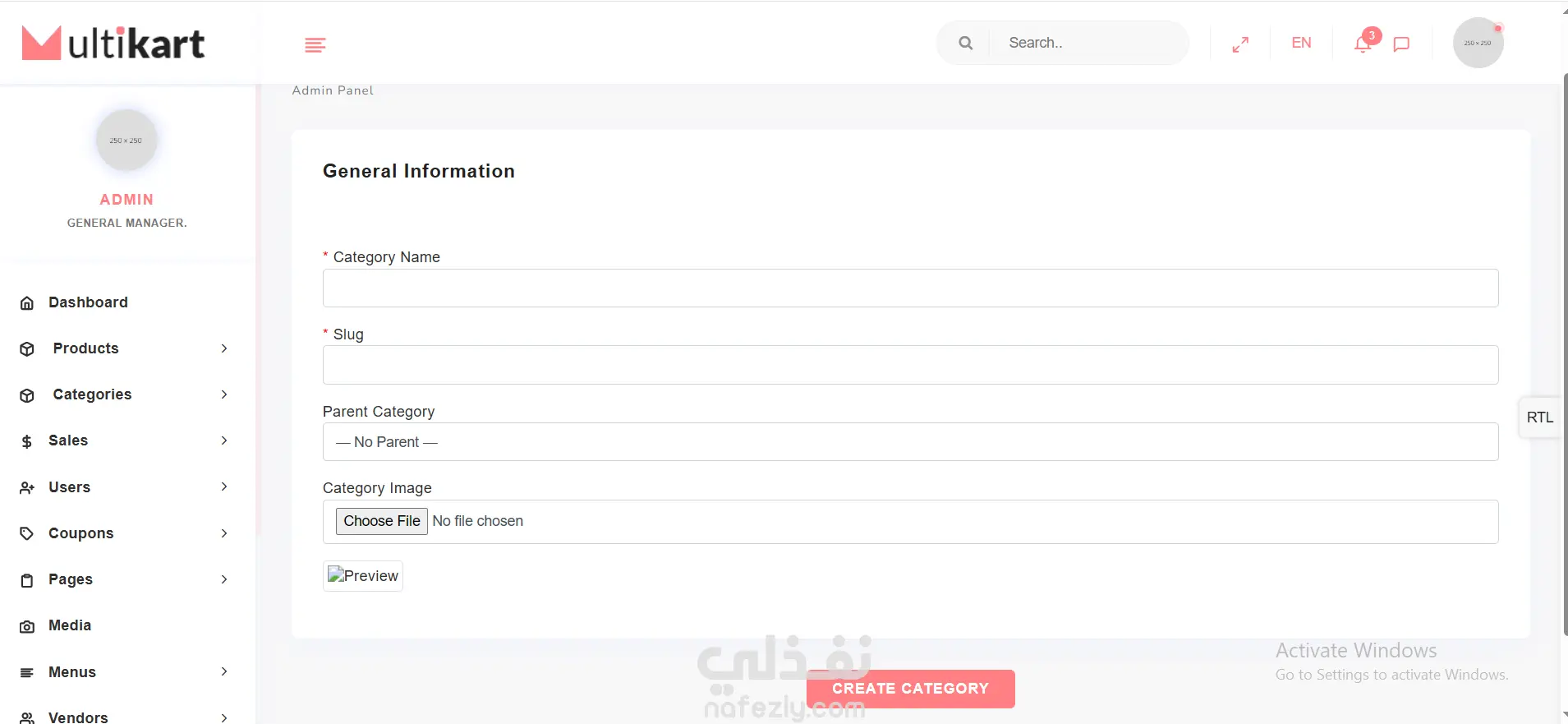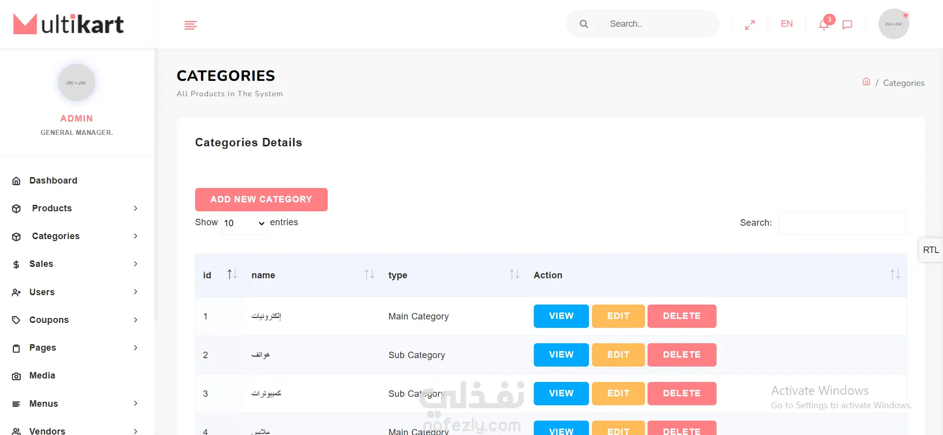 إضافة قسم (addCategory): لإنشاء تصنيفات رئيسية وفرعية جديدة بكل مرونة.