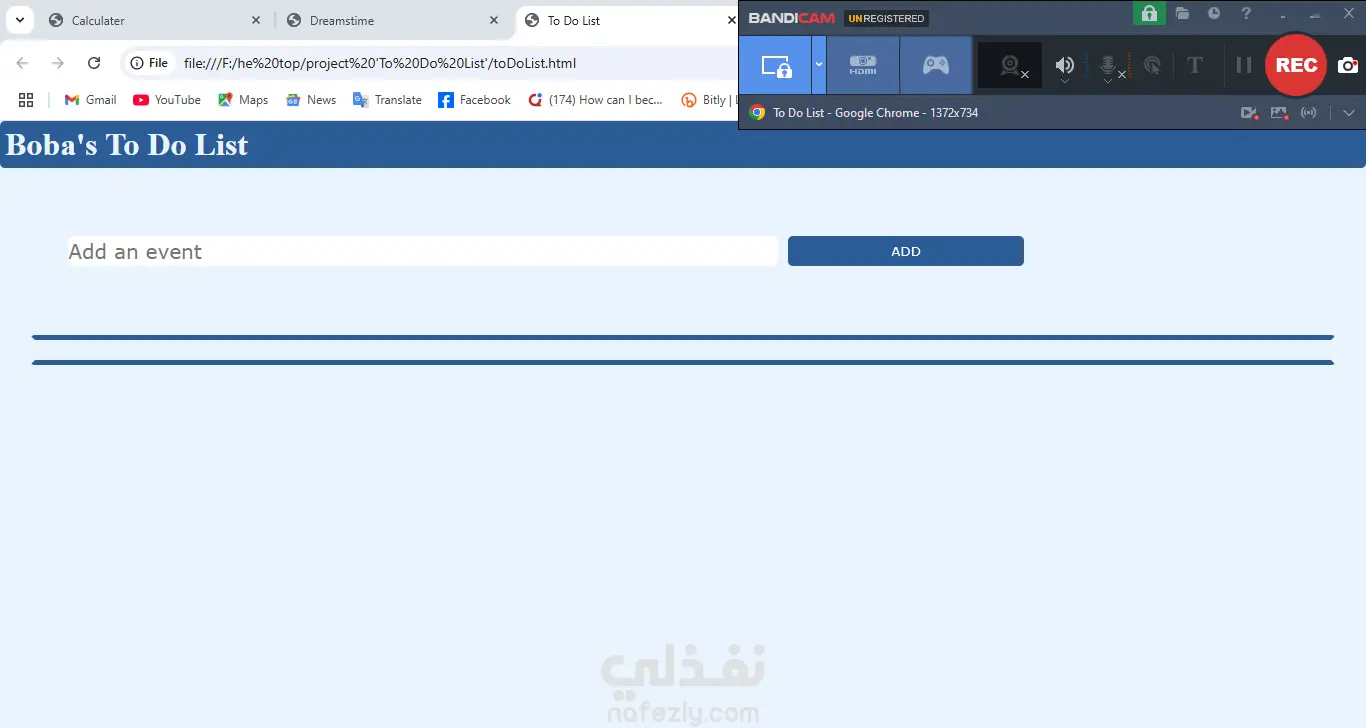 تطبيق ويب بسيط و فععال يساعد المستخدمين على تنظيم مهامهم اليومية. يركز التطبيق على تجرية مستخدم سلس مع ضمان عدم فقدان البيانات عند اغلاق المتصفح. الميزات: - امكانية اضافة و حذف مهام. - استخدام local Storage لخفظ البيانات تلقائياً و بقائها تى بععد اغلاق المتصفح. - واجهة مستخدم تفاعلية ( responsive Design). - تحديث واجهة المستخدم تلقائياً دون الحاجة لاعادة تحميل الصفحةز