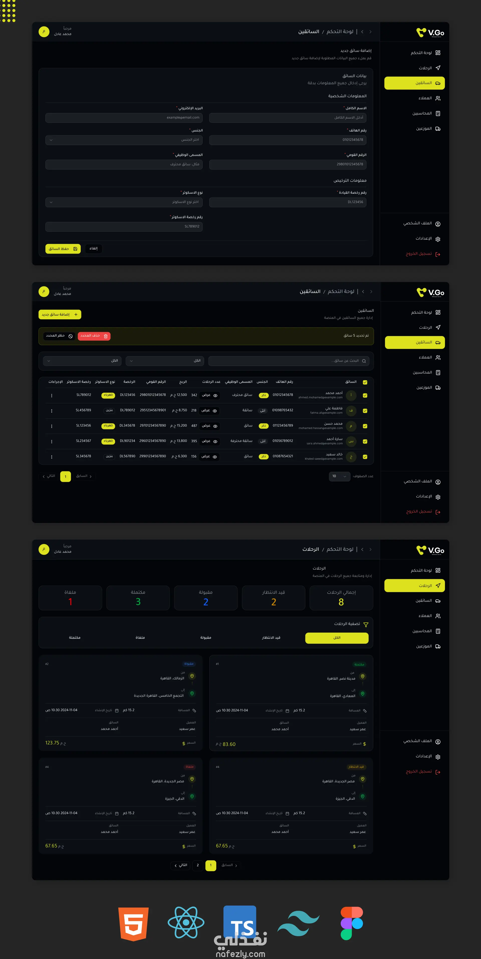 • السائق: متابعة الرحلات وحالتها بشكل مباشر.