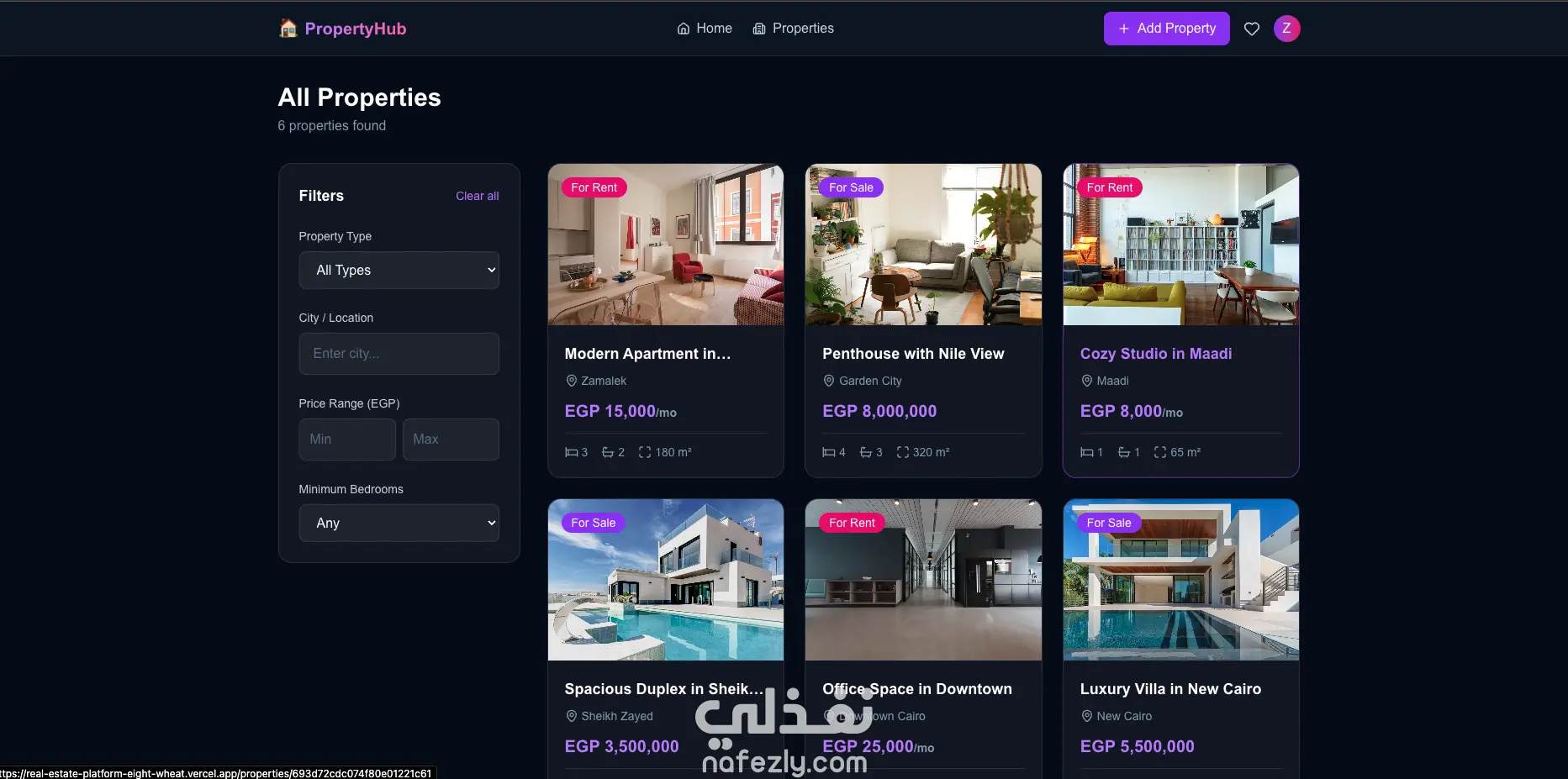 ✅ عرض العقارات مع البحث والفلترة