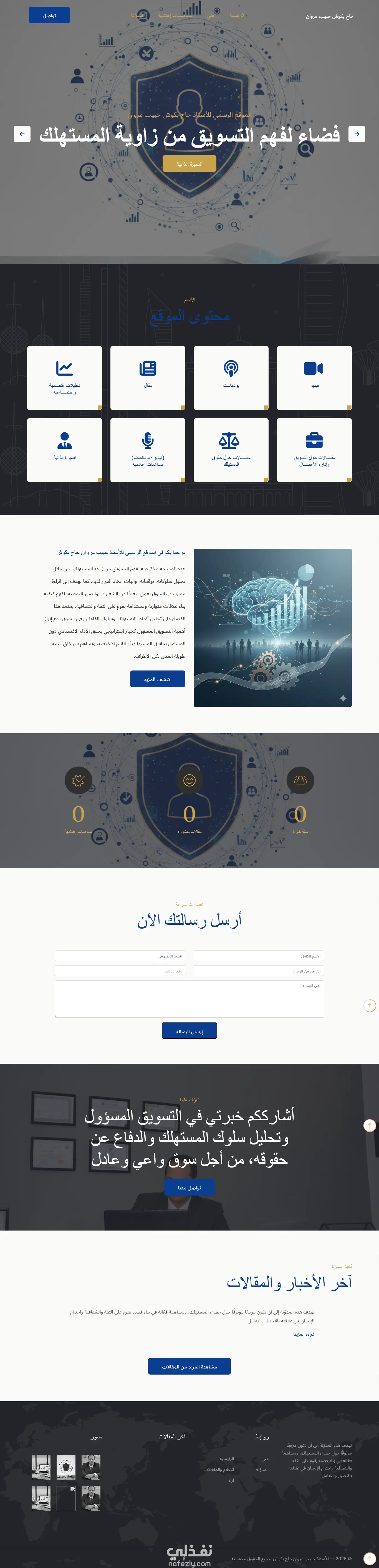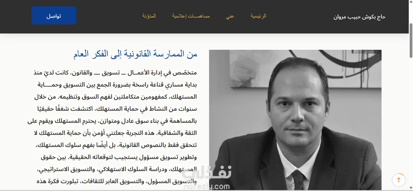 تصميم وتطوير موقع إلكتروني لمحامي باللغة العربية، يهدف إلى تقديم الخدمات القانونية بشكل واضح وموثوق. يشمل الموقع عرض التخصصات القانونية، نبذة عن المحامي، وسائل التواصل، إضافة إلى مدونة قانونية لنشر المقالات والتوعية القانونية. تم اعتماد تصميم متجاوب يضمن تجربة مستخدم سلسة على جميع الأجهزة، مع التركيز على البساطة والمصداقية.