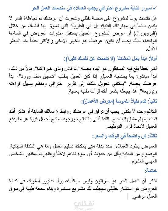 "نموذج لمقال حصري كتبته ونسقته يوضح مهارات كتابة المحتوى التسويقي وإقناع العملاء في منصات العمل الحر."