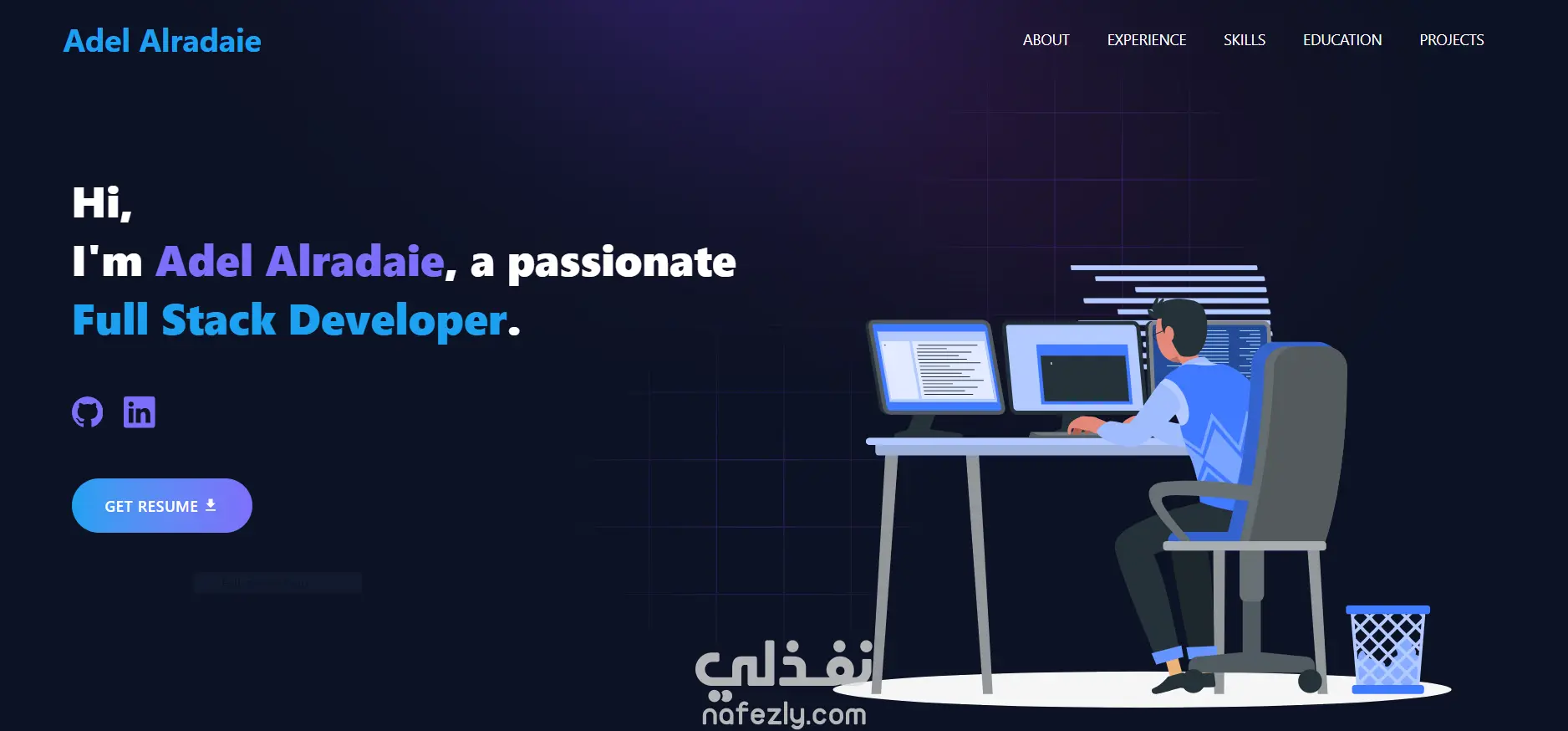 موقع ويب لعرض أعمال مطوري البرمجيات، تم إنشاؤه باستخدام react.js و tailwind CSS، يساعدك على عرض أعمالك ومهاراتك كمطور برامج.