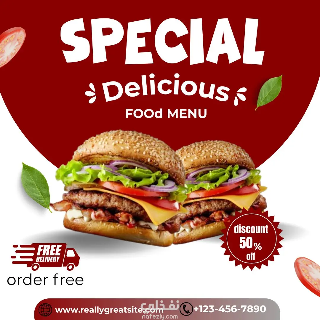 يعتمد التصميم على مزيج من اللونين الأحمر الداكن والأبيض.الجزء العلوي من الخلفية يأخذ شكلاً نصف دائري باللون الأحمر، بينما تظل بقية الخلفية بيضاء ناصعة، مما يعطي شعوراً بالنظافة والوضوح.استُخدمت عناصر من أوراق خضراء وشرائح طماطم متناثرة لإضفاء حيوية على المساحات البيضاء.