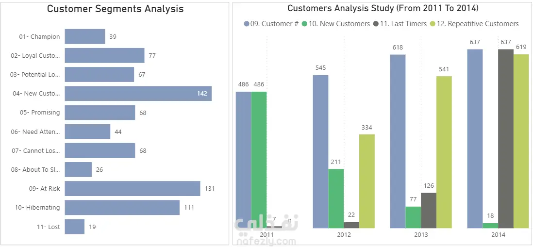 قمت بتصميم وتطوير لوحة بيانات تفاعلية متكاملة باستخدام Power BI لتحليل المبيعات وسلوك العملاء، مع التركيز على دعم اتخاذ القرار وتحسين الأداء التجاري. محتوى العمل: تنظيف وتجهيز البيانات باستخدام Power Query بناء نموذج بيانات (Star Schema) لربط الجداول بكفاءة إنشاء مقاييس DAX متقدمة لقياس: إجمالي المبيعات معدل النمو العملاء الجدد مقابل العملاء المتكررين RFM Segmentation تصميم واجهة تفاعلية سهلة الاستخدام مع فلاتر ديناميكية إضافة صفحات تحليلية للمبيعات، المنتجات، العملاء، والمناطق الجغرافية القيمة المضافة: تقليل وقت إعداد التقارير بنسبة 40% تحسين دقة البيانات إلى 99% دعم قرارات التسويق والبيع عبر رؤية واضحة للاتجاهات مناسب لـ: الشركات الصغيرة والمتوسطة المتاجر الإلكترونية فرق المبيعات والتسويق أصحاب المشاريع الباحثين عن رؤية واضحة لأداء أعمالهم