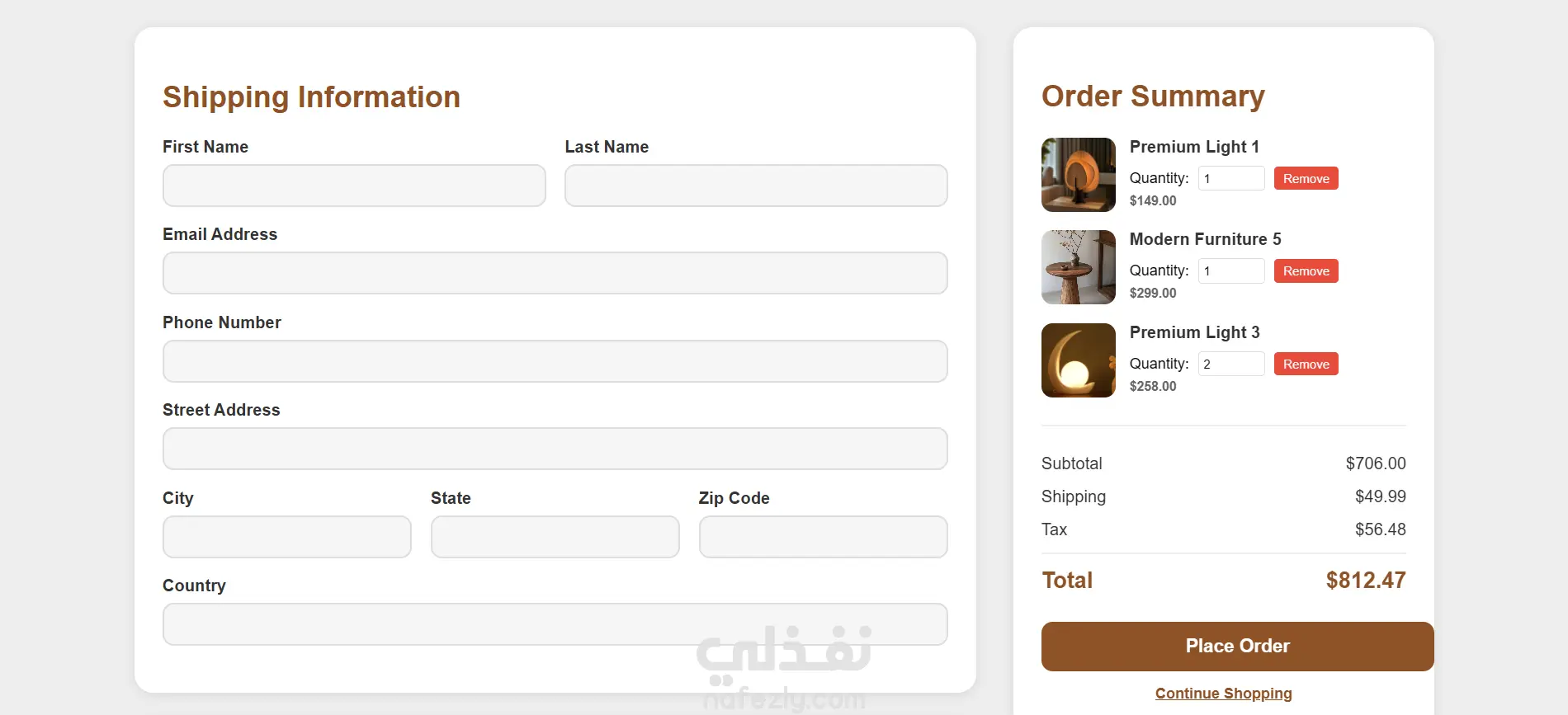 مشروع تطبيق ويب تجاري إلكتروني متكامل يركز على تقديم تجربة تسوق سلسة وجذابة لبيع الأثاث المنزلي. يتميز المشروع بواجهة مستخدم عصرية تركز على سهولة التصفح وإتمام عمليات الشراء. المميزات الرئيسية: - الصفحة الرئيسية (Landing Page): تعرض رؤية المتجر وأقساماً توضيحية لخدمات التوصيل والجودة والمواد الصديقة للبيئة. - عربة تسوق تفاعلية: نظام ذكي مدمج يسمح بإضافة المنتجات وتحديث الكميات وحساب الإجمالي تلقائياً. - نظام إتمام الشراء (Checkout System): واجهة منظمة لجمع بيانات الشحن واختيار طرق الدفع (بطاقات الائتمان، PayPal، أو الدفع عند الاستلام). - إدارة البيانات: يتم استخدام Local Storage (ذاكرة المتصفح) لضمان بقاء المنتجات في عربة التسوق حتى بعد إغلاق المتصفح. - تصميم متجاوب: واجهة برمجية تتكيف مع مختلف أحجام الشاشات باستخدام تقنيات CSS الحديثة. التقنيات المستخدمة - HTML5: لبناء الهيكل الإنشائي للصفحات (الرئيسية، المنتجات، الدفع). - CSS3: للتنسيق الجمالي واستخدام أنظمة Layout متطورة مثل Flexbox و Grid. - JavaScript: لإدارة منطق المتجر، وتحديث واجهة المستخدم ديناميكياً، والتحكم في العربة.