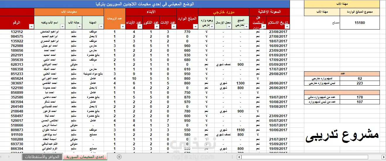 إدخال وتنظيم البيانات(Excel):إدخال البيانات بدقة عالية،تنظيمها،وتطبيق المعادلات الأساسية لملفات جاهزة للتحليل وللعمل.