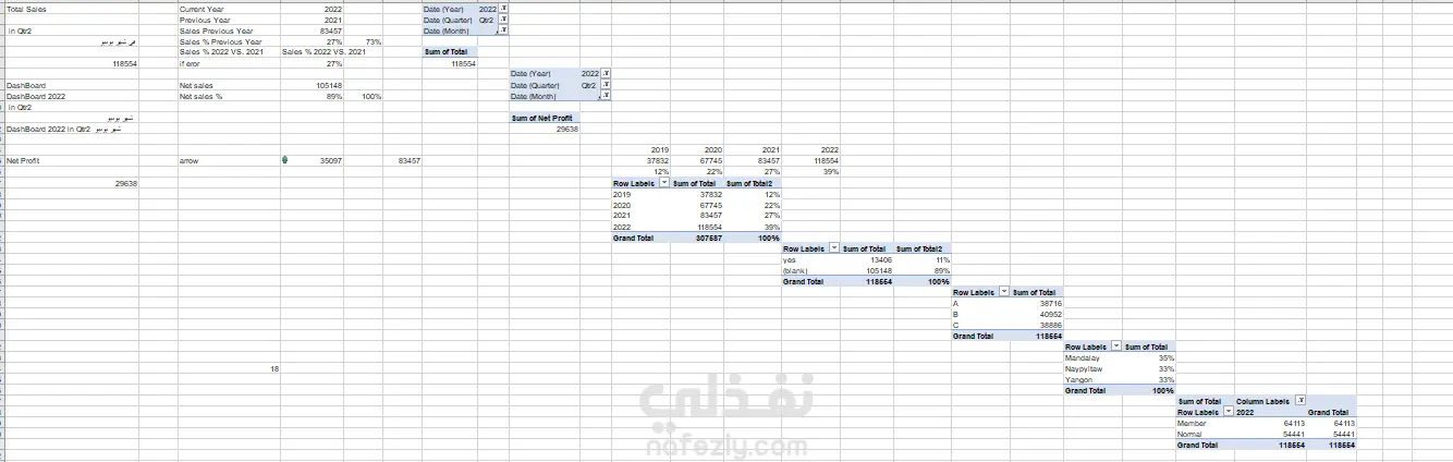 تحليل وتصور البيانات Power BI-Excel هل تواجه تحديات في بياناتك؟ أدرك أن البيانات المعقدة تستهلك وقتك وتمنعك من اتخاذ قرارات سريعة ومصيرية. أنا هنا لأحل لك هذه المشاكل: غموض البيانات: تحويل الكميات الضخمة من البيانات إلى رؤى واضحة ومختصرة تدعم قراراتك الاستراتيجية. بطء التقارير: توفير تقارير ولوحات تحكم تفاعلية ومحدثة باستمرار باستخدام Power BI. سأقدم لك إنشاء رسوم بيانية ولوحات معلومات تفاعلية ومصممة بعناية باستخدام Excel و Power BI. عرض نتائج تحليلك بشكل مرئي مبسط الفهم، مما يزيل التعقيد عن البيانات الضخمة. ما الذي ستحصل عليه في النهاية؟ ملف بيانات مُجهَّز ونظيف: بياناتك جاهزة للاستخدام والتحليل المستقبلي. لوحة معلومات تفاعلية: تقرير بصري يوضح أهم الاتجاهات، النتائج الرئيسية، والمؤشرات. توصيات عملية: سأقدم لك ملاحظات وتوصيات استراتيجية قابلة للتنفيذ بناءً على التحليل، لمساعدتك في تحسين الأداء وفهم أعمق للفرص والتحديات التي تواجه عملك. لنبدأ في تحويل بياناتك إلى قوة دفع لنجاحك!