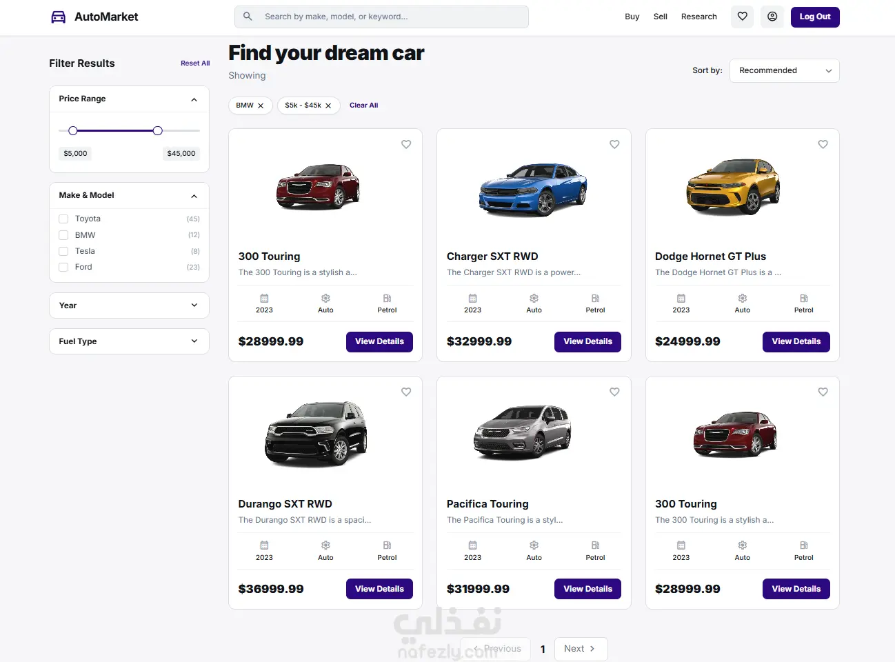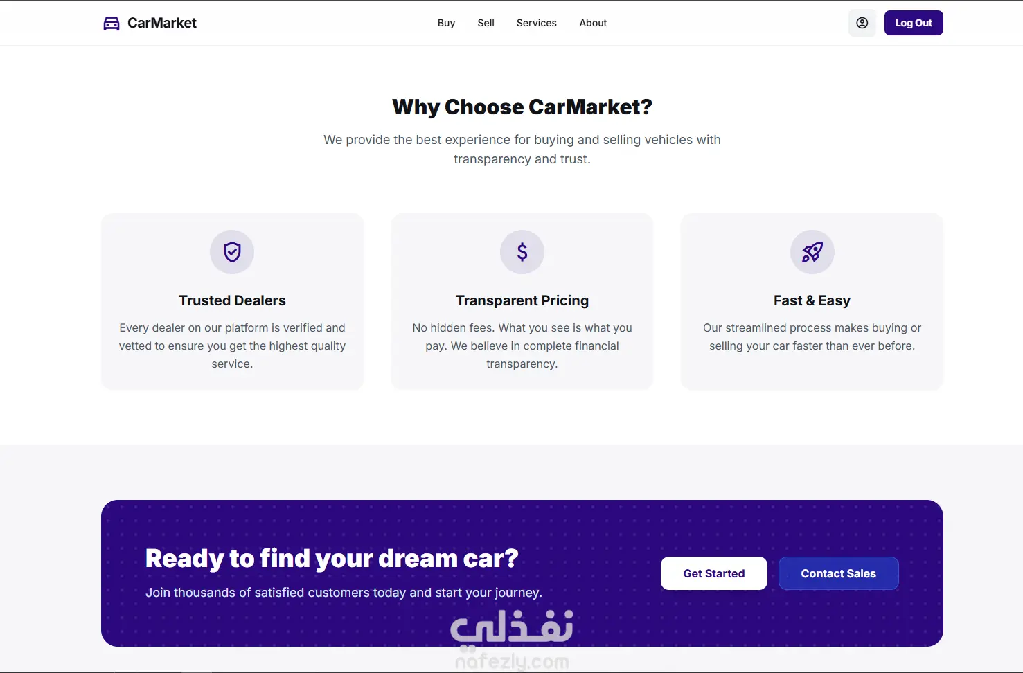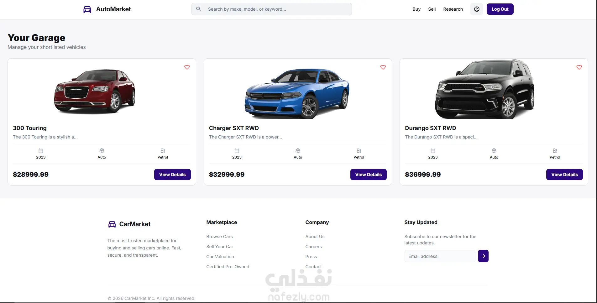AutoMarket – تصميم واجهة موقع بيع وشراء سيارات (Frontend UI)
