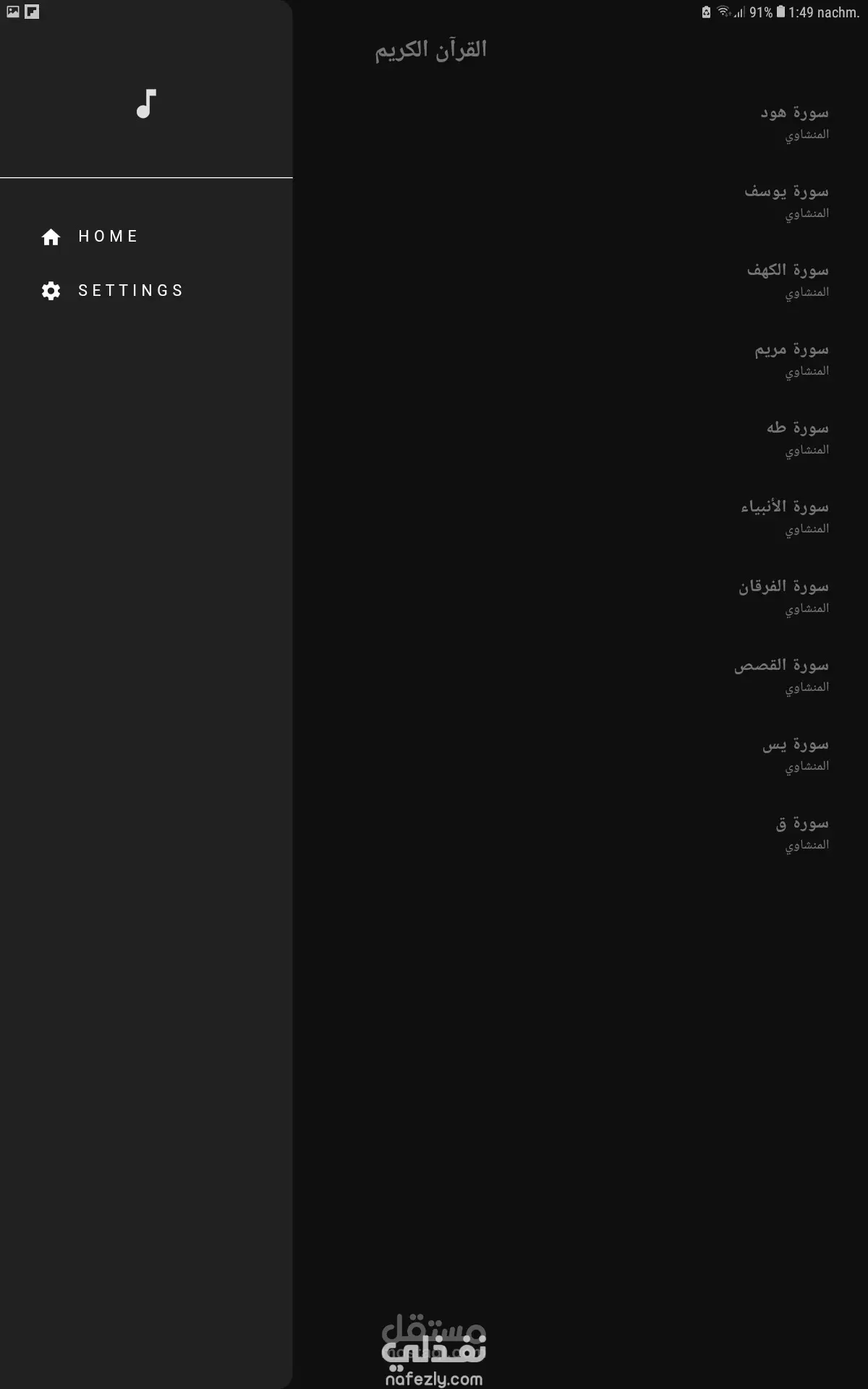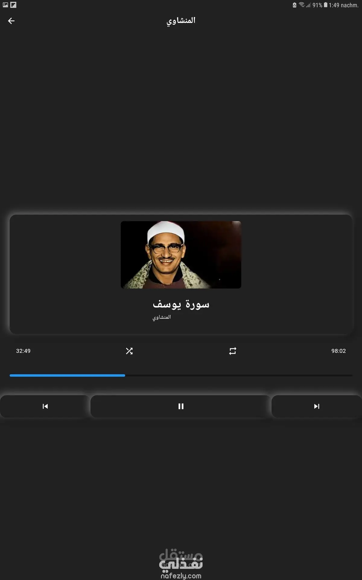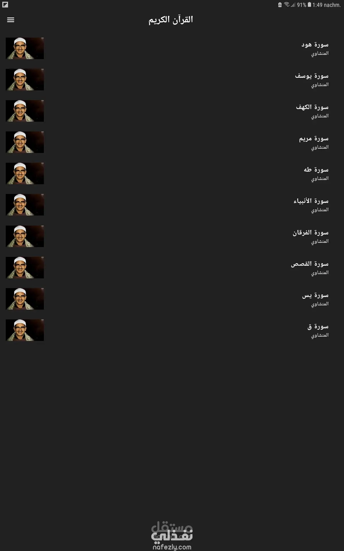 تطبيق قران بصوت المنشاوي لجزء من المصحف وليس كاملاً بشكل عصري