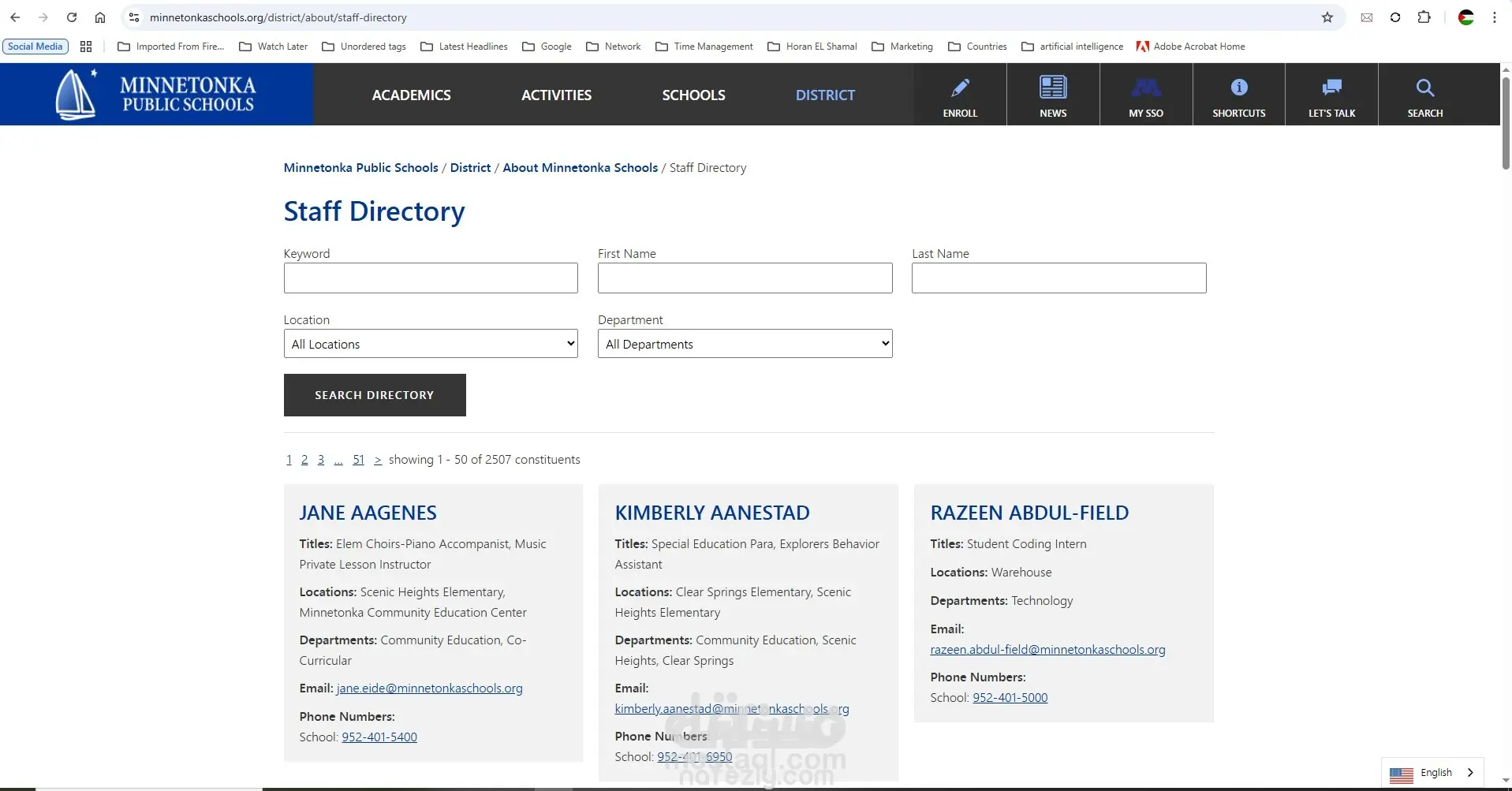 قمت بتنفيذ مشروع استخراج بيانات (Web Scraping) من دليل الموظفين الخاص بمؤسسة تعليمية (Minnetonka Schools)، وتحويل السجلات العامة إلى ملف منظم جاهز للاستخدام التحليلي أو للإدخال في قواعد بيانات أو CRM.