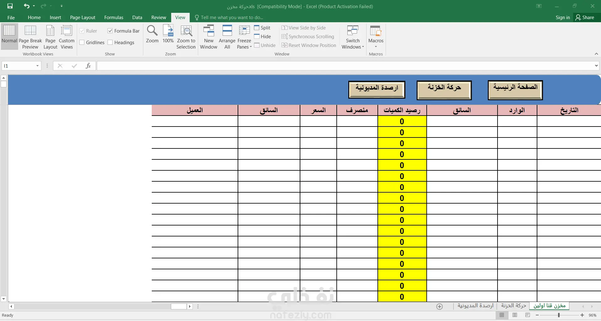دقة الحسابات: ربط الخلايا بمعادلات تلقائية لحساب (الوارد، المنصرف، وصافي الرصيد) لضمان عدم وجود أخطاء في الجمع والطرح.