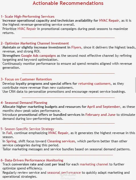 تم استخراج Insights عملية وتقديم Recommendations قابلة للتنفيذ بناءً على التحليل، وتم رفعها بشكل منفصل على الموقع لدعم أصحاب القرار بخطوات واضحة لتحسين الأداء التسويقي وزيادة الإيرادات.