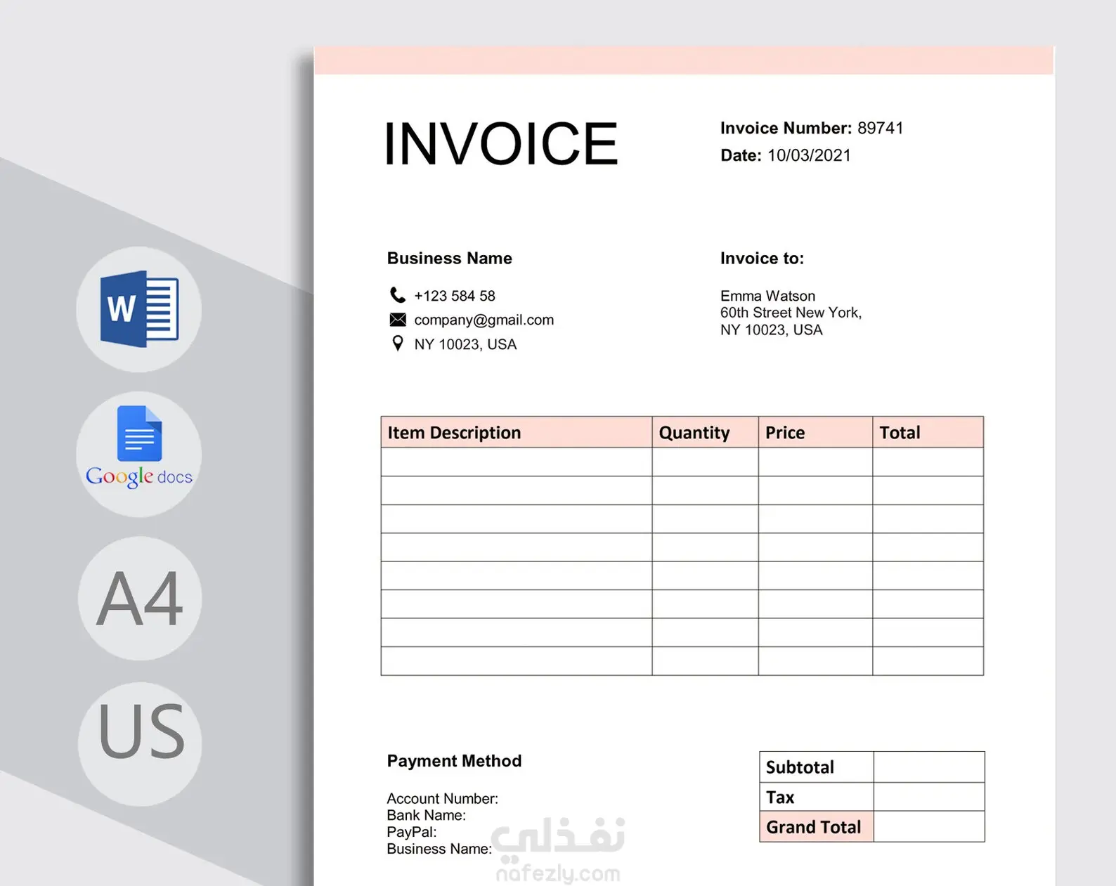 تصميم فواتير احترافية على برنامج Word جاهزة للطباعة