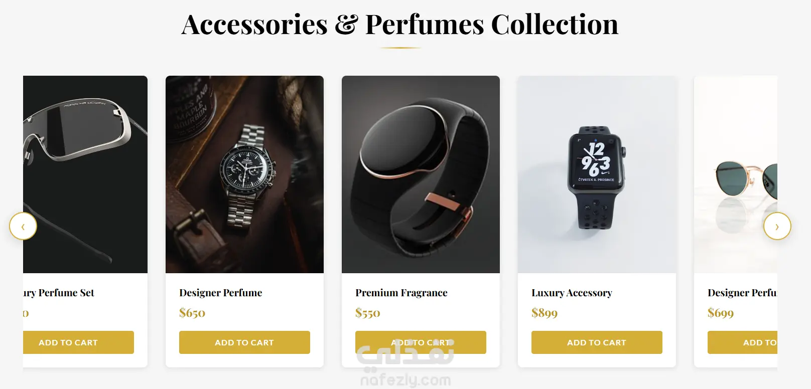 - سلايدر منتجات أفقي مع تحكم ذكي بالتمرير.