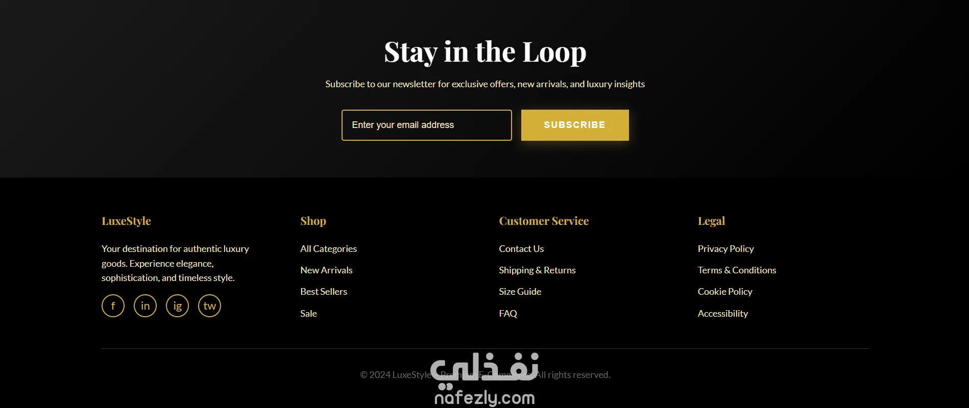 - تصميم فاخر بألوان الأسود والذهبي مع خطوط راقية.