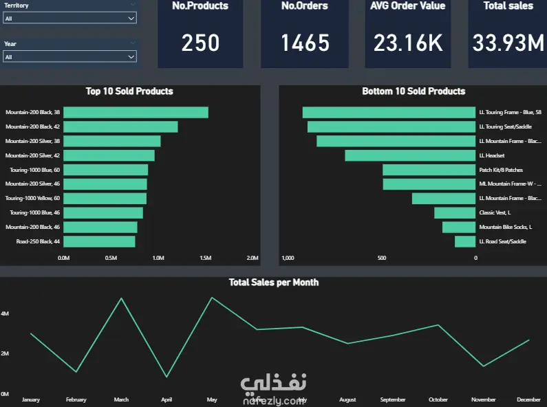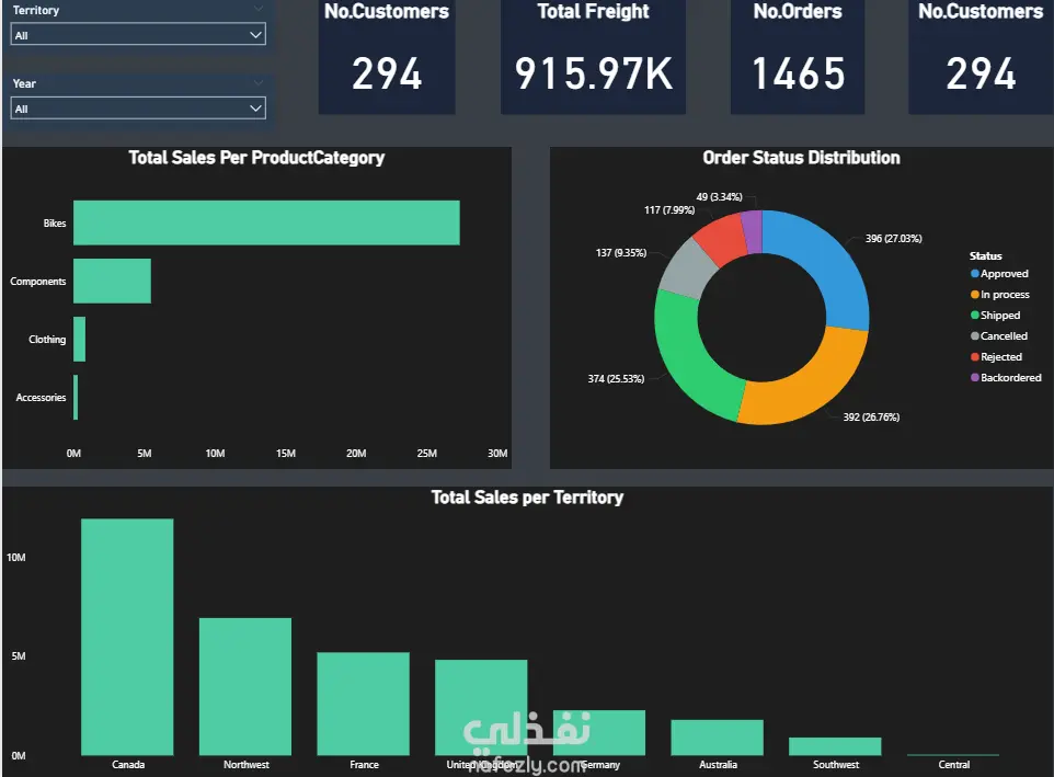 قمت بتصميم وتطوير حل متكامل باستخدام Power BI يهدف إلى مراقبة أداء المبيعات وتتبع رحلة الطلبات بدقة. هذا المشروع يحول البيانات الخام إلى رؤى استراتيجية تساعد في اتخاذ القرارات لزيادة الأرباح وتحسين الكفاءة اللوجستية.