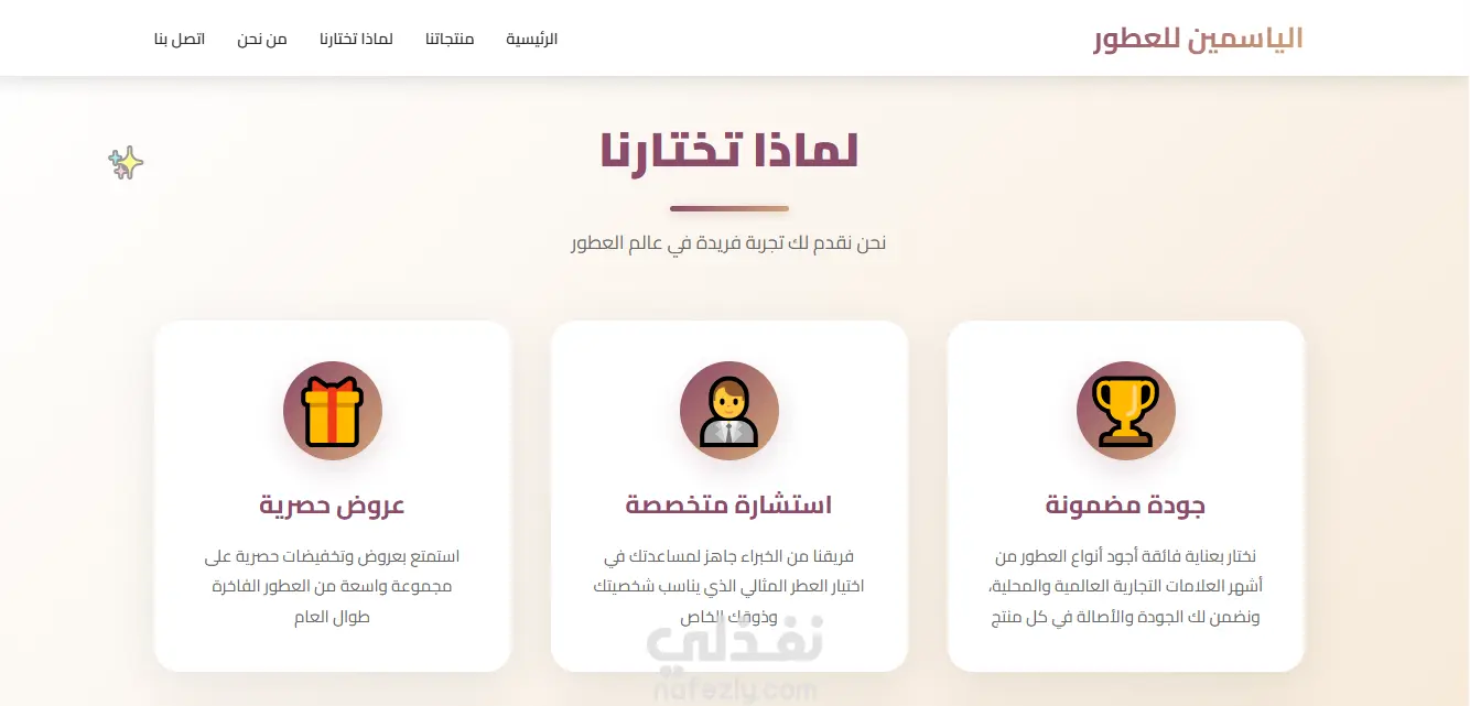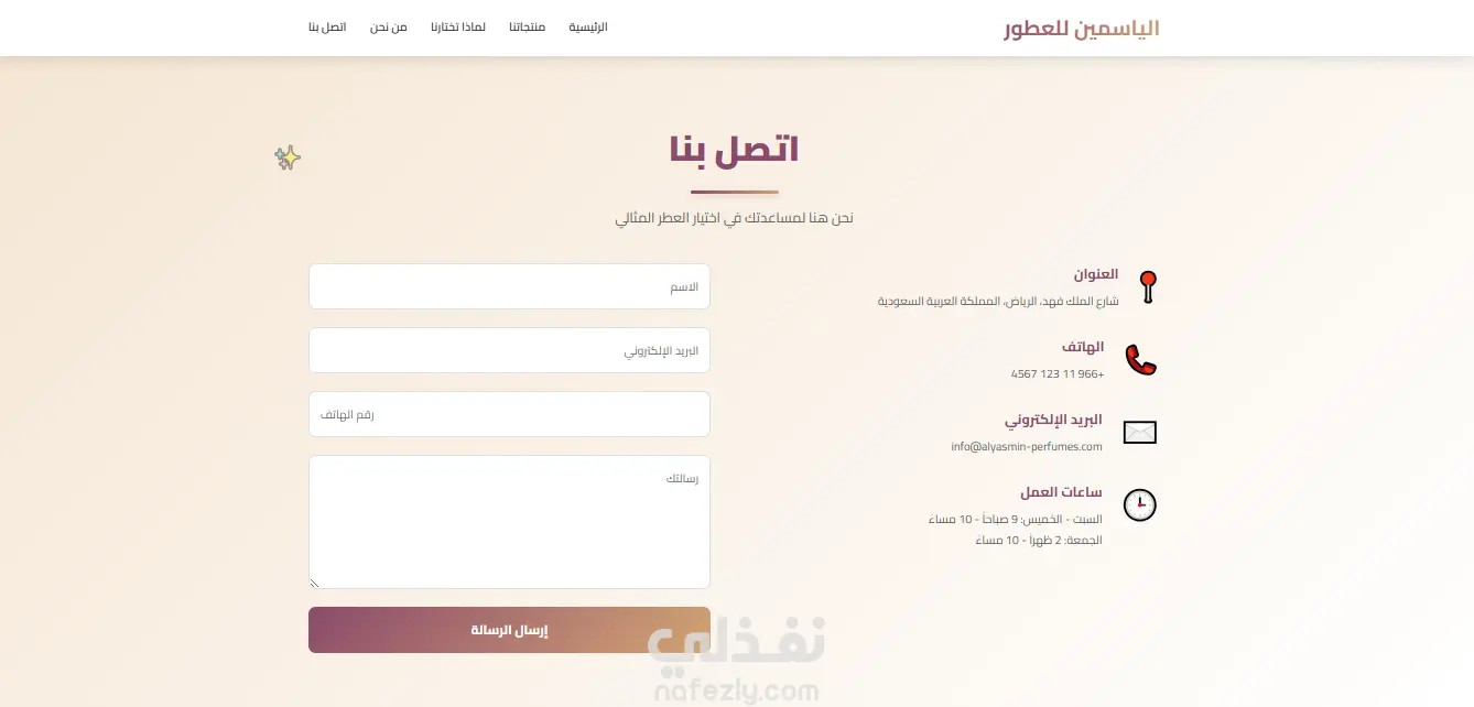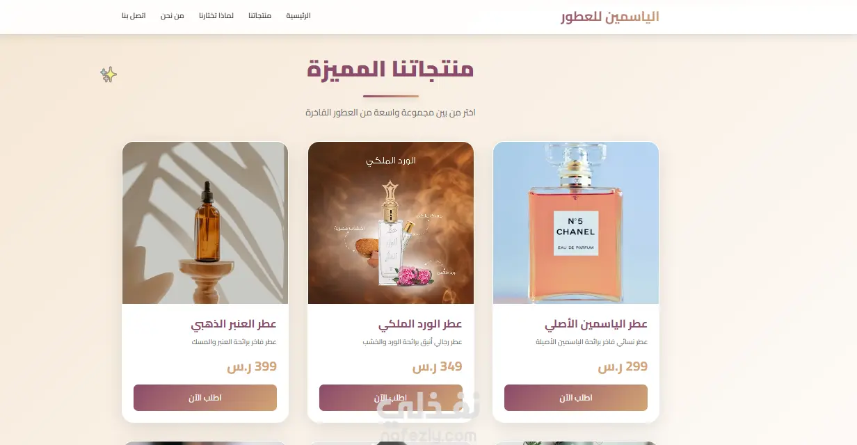 صفحة هبوط Landing Page لمتجر عطور الياسمين