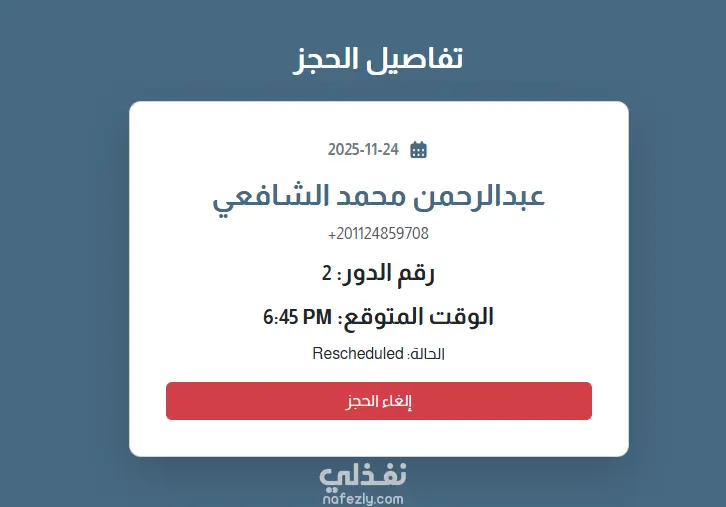 تأجيل وإلغاء مرن: إمكانية تعديل أو إلغاء المواعيد مع تحديث تلقائي للجداول.