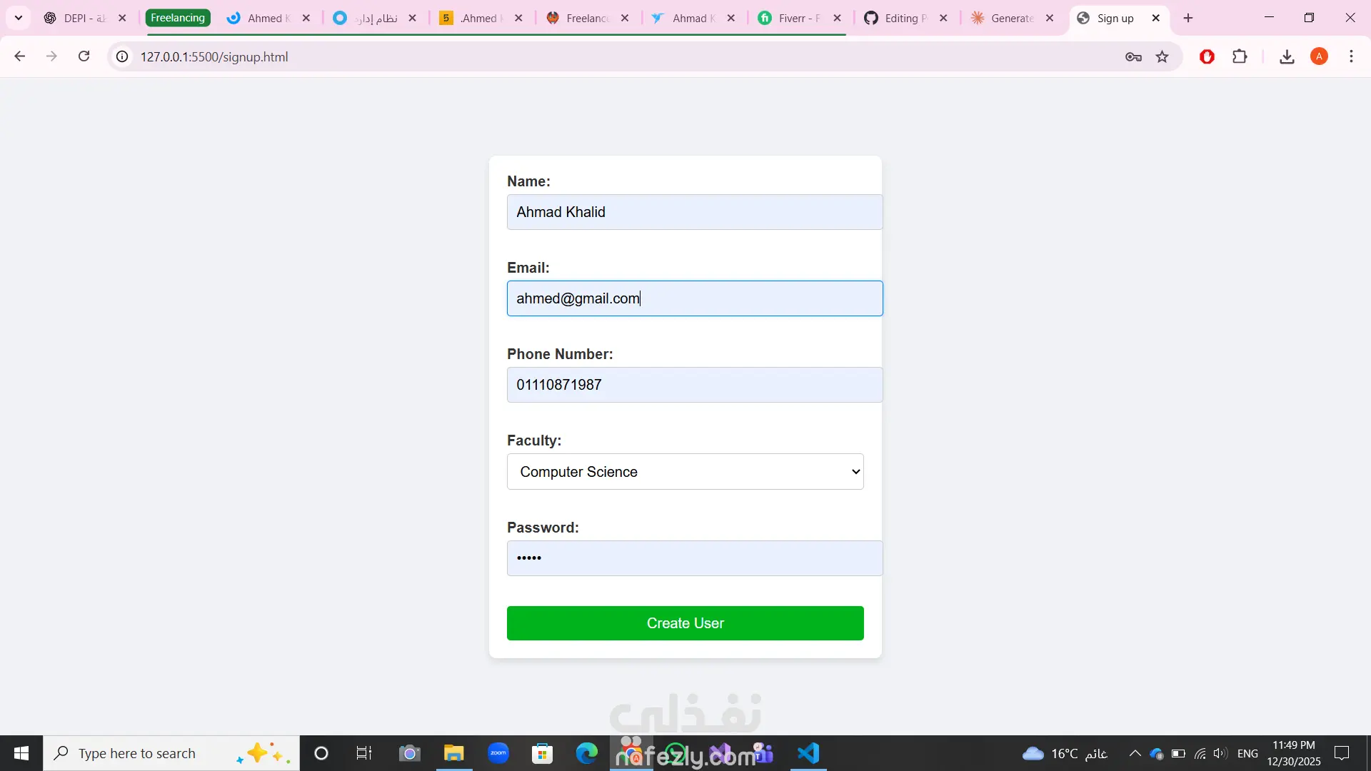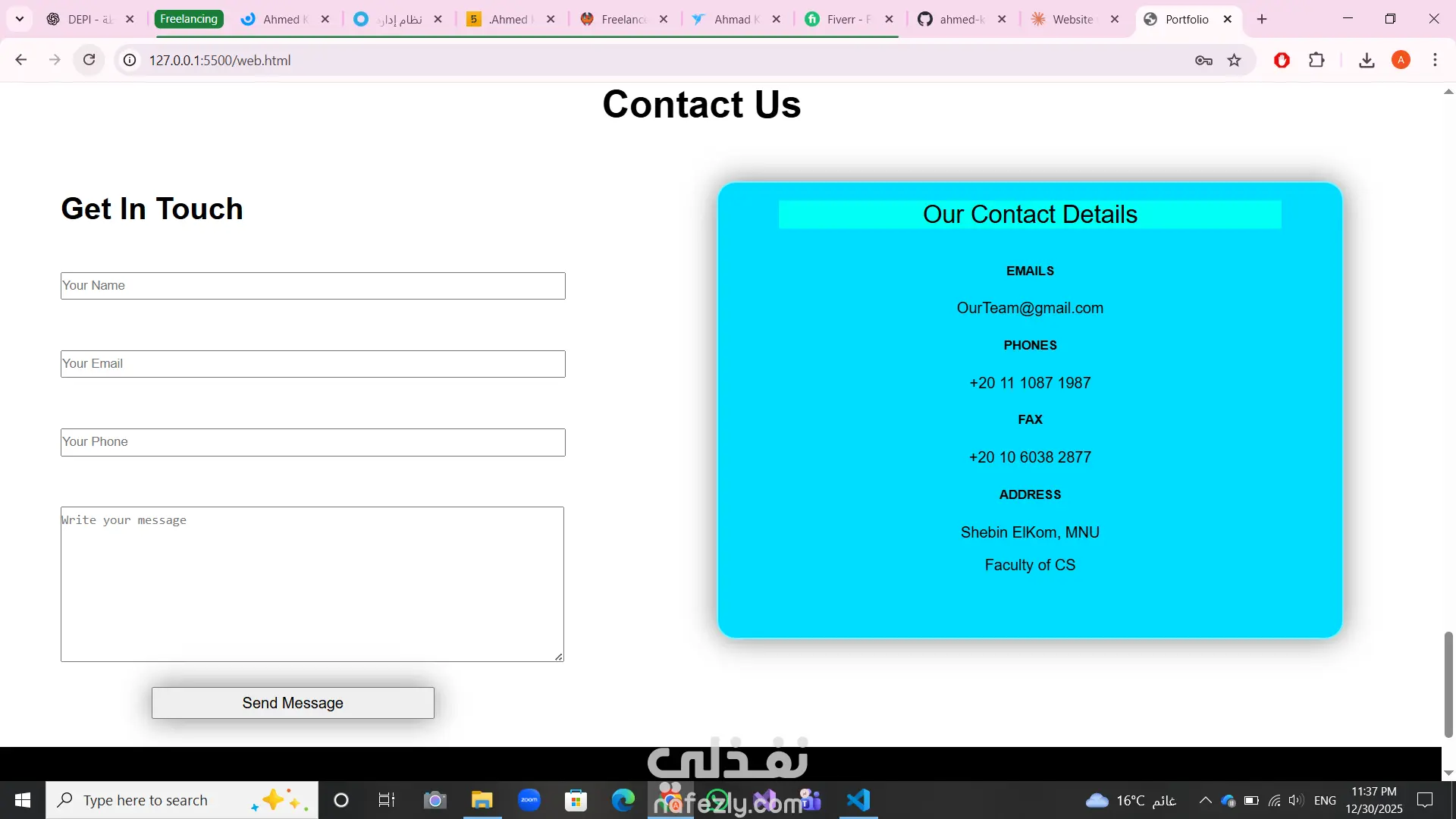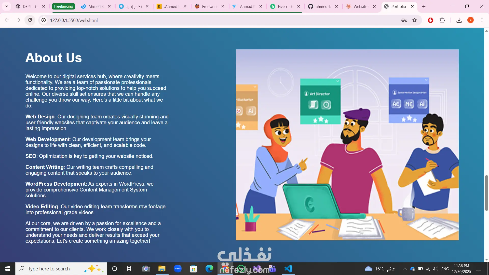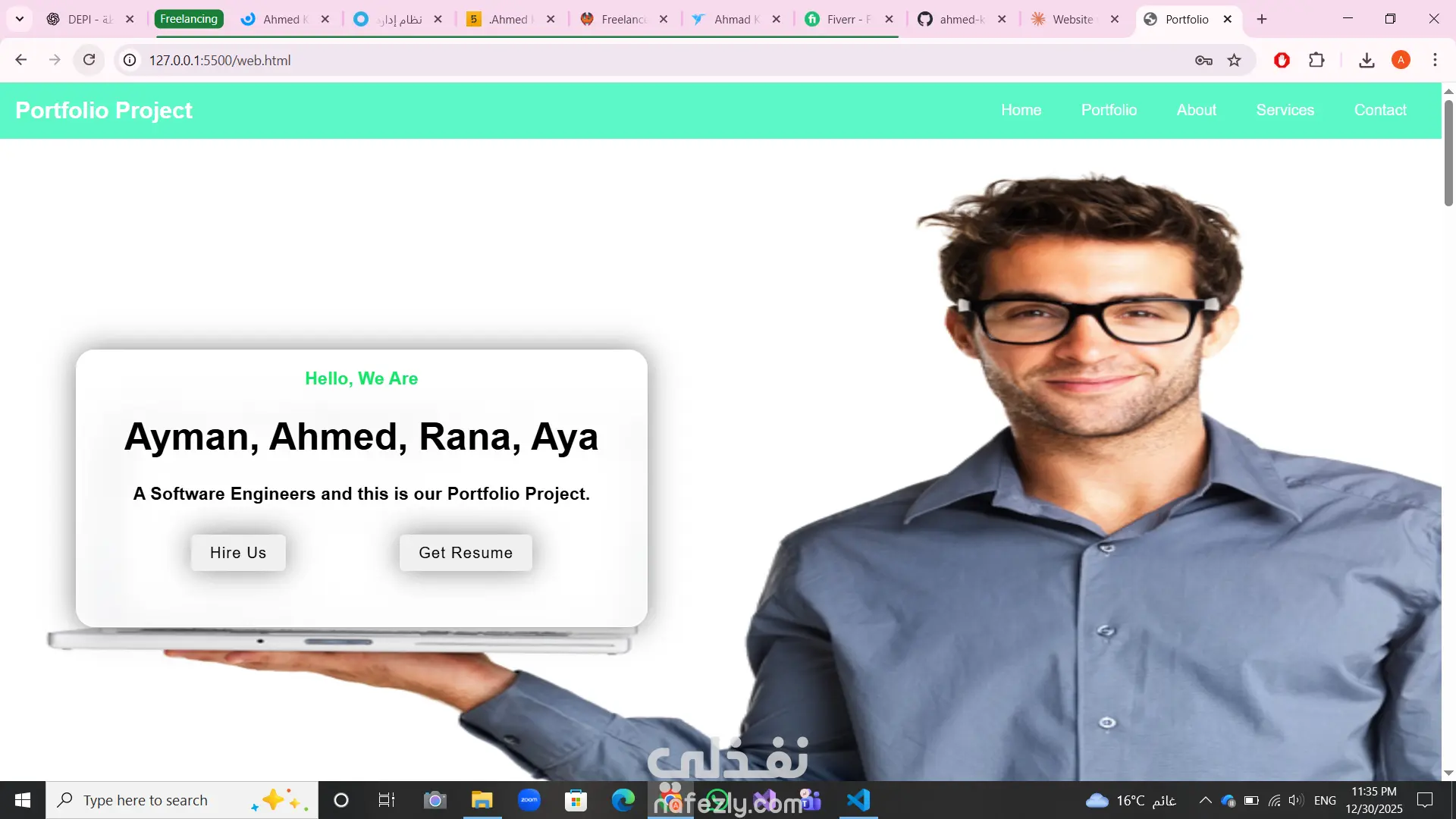 تصميم وتطوير موقع بورتفوليو شخصي Full-Stack