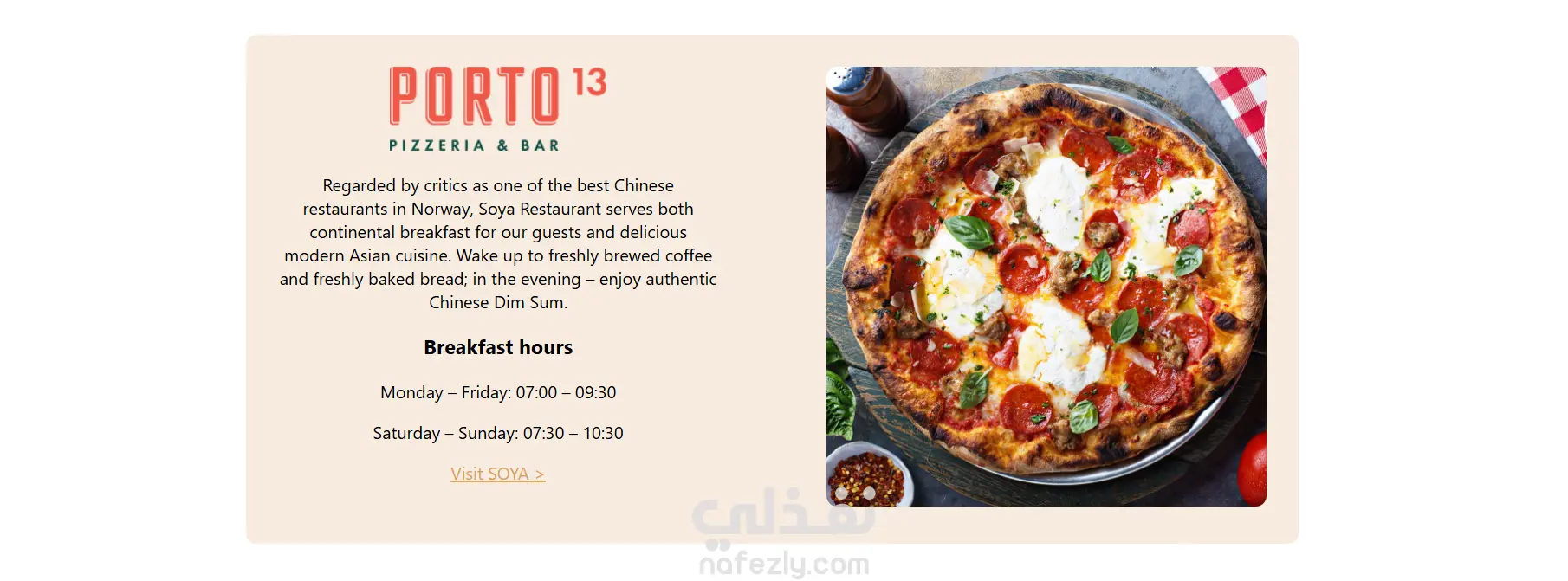 Food: قسم خاص بخدمات الطعام والوجبات المتاحة.