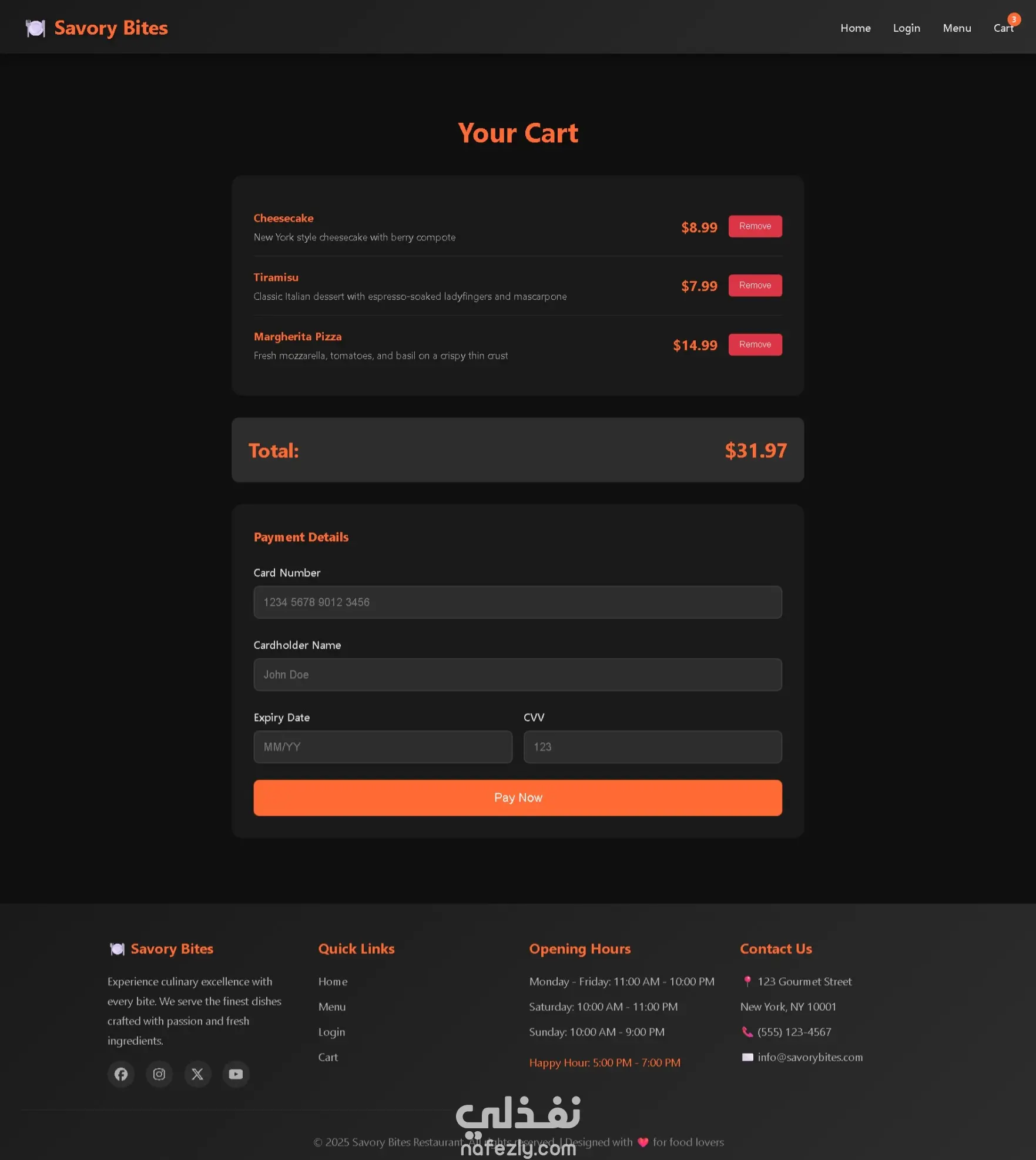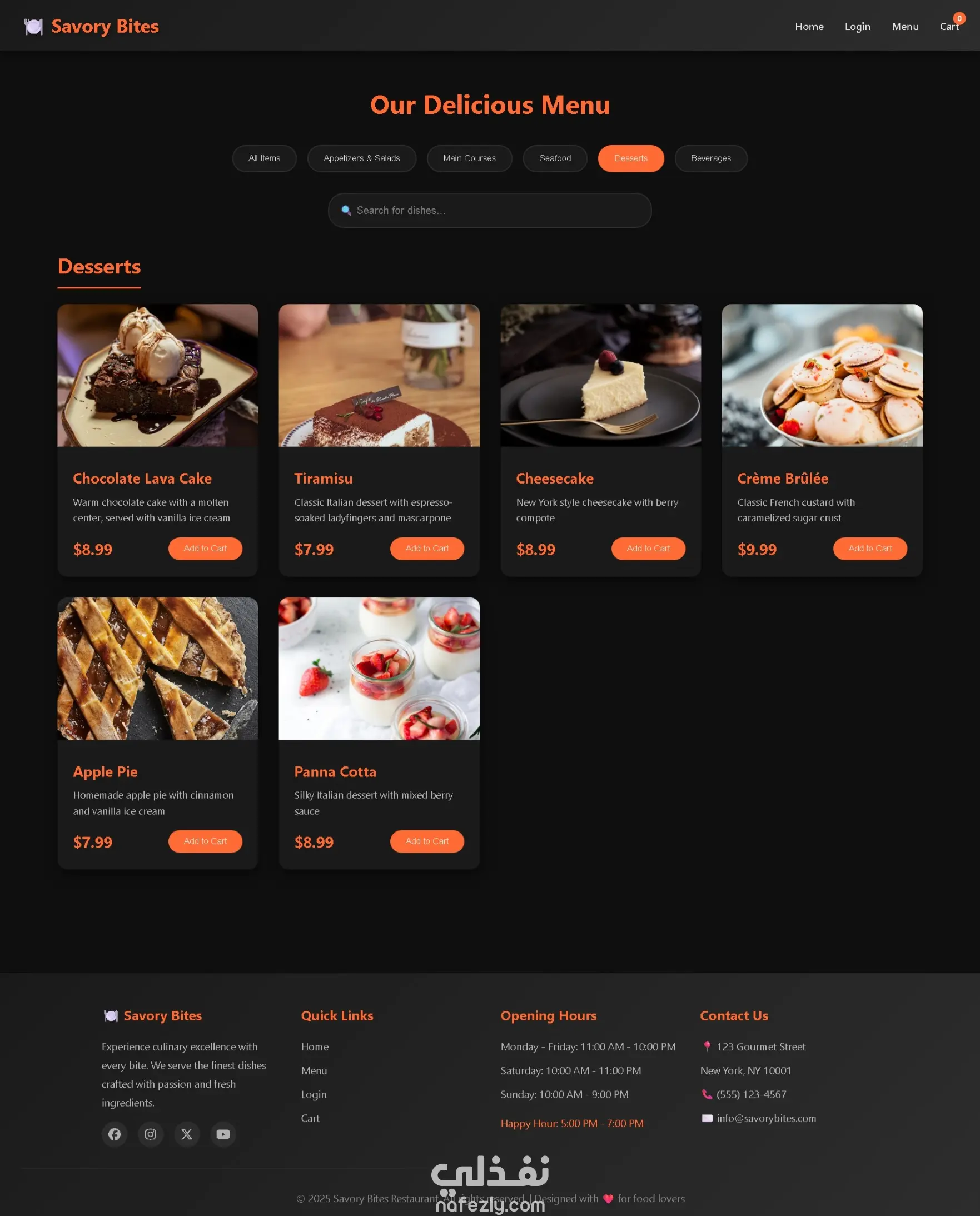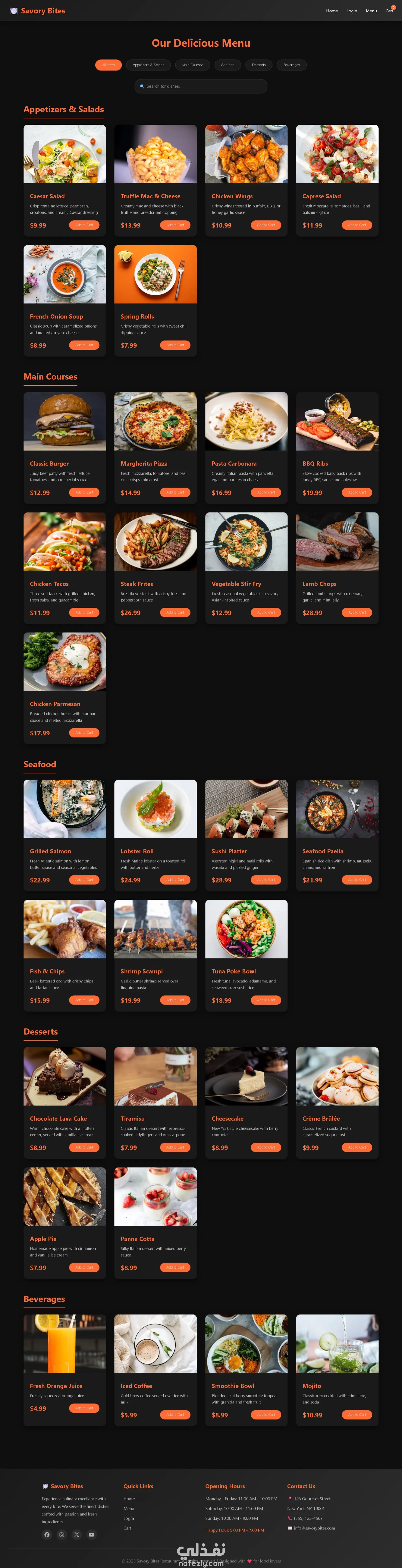 تصميم وتطوير موقع مطعم فاخر (Savory Bites) مع نظام طلب إلكتروني وتجربة مستخدم عصرية