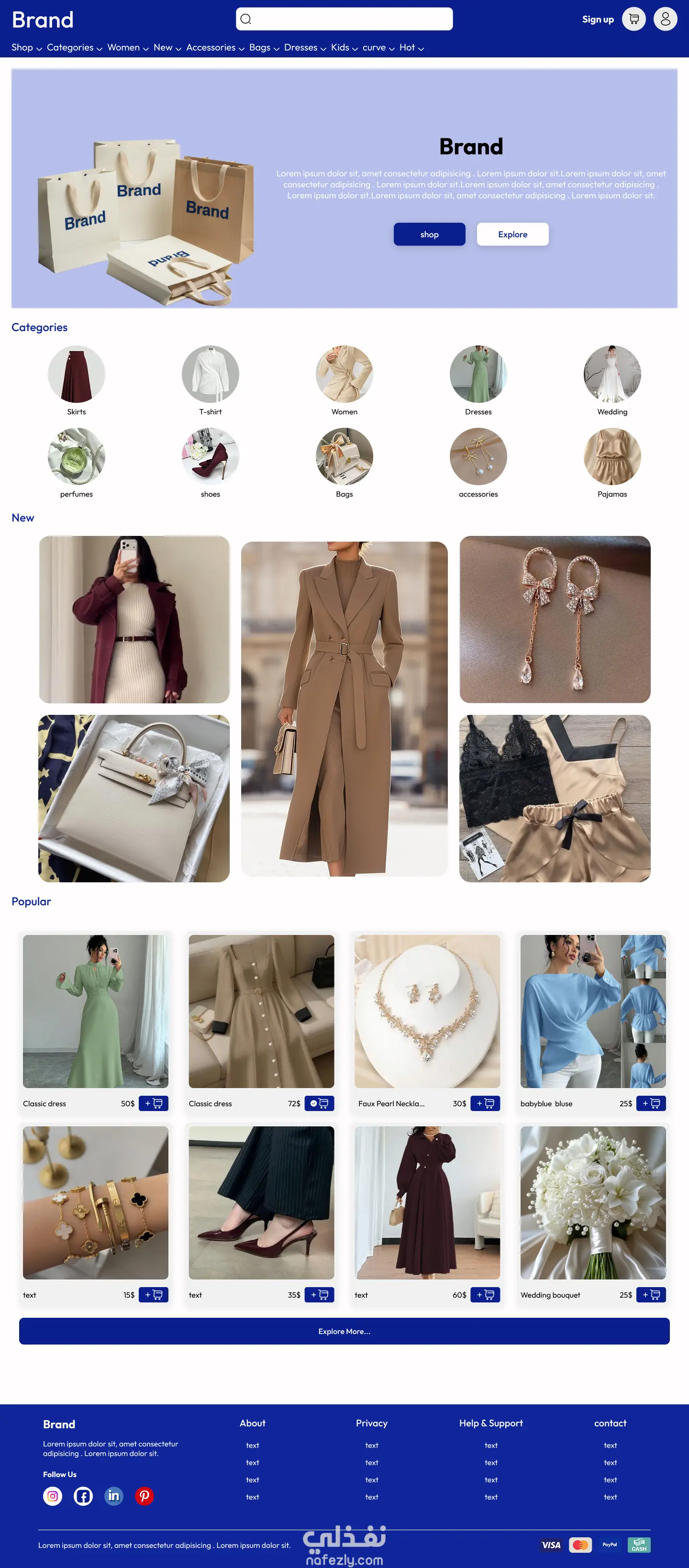 تصميم الصفحة الرئيسية (Landing Page) مع عرض الفئات والمنتجات