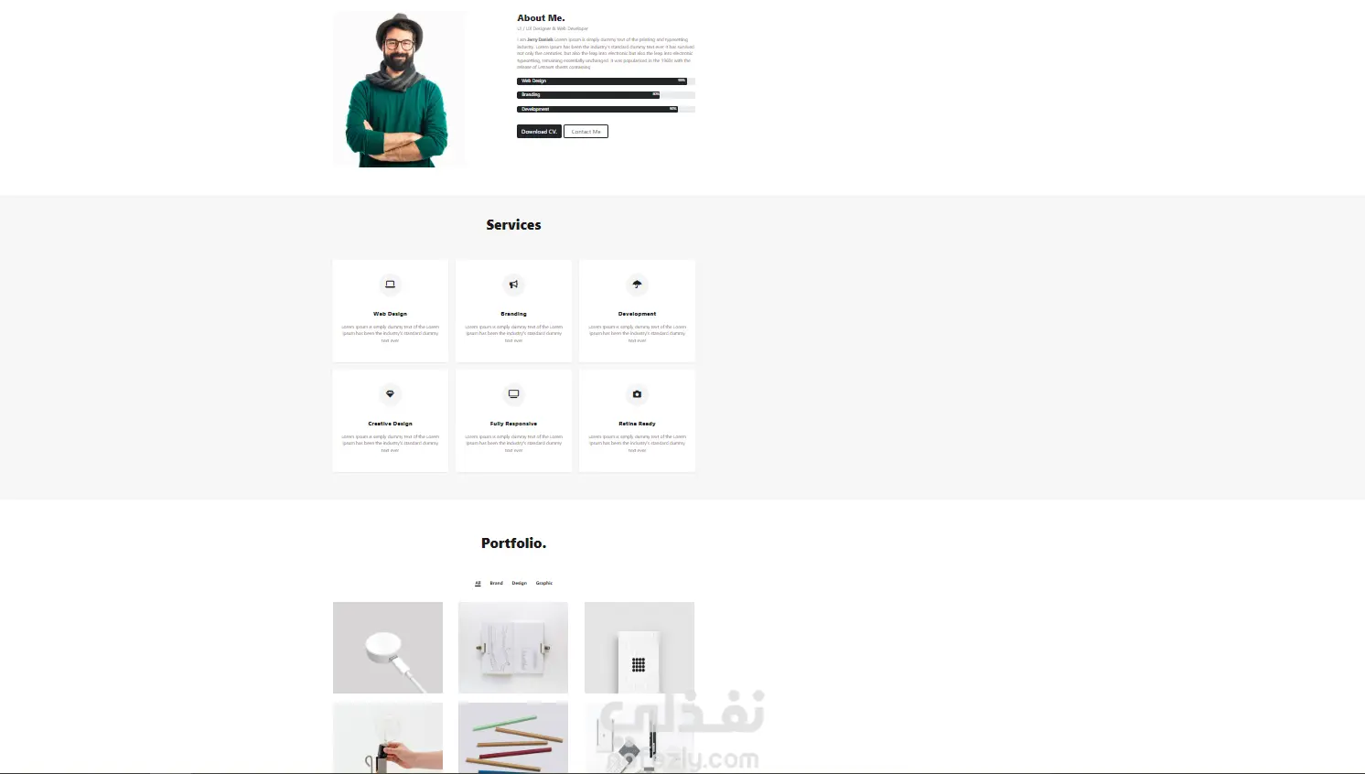 بورتفوليو شخصي لعرض الأعمال والمهارات، بتصميم عصري ومتجاوب يبرز الخبرات بشكل واضح وسلس.