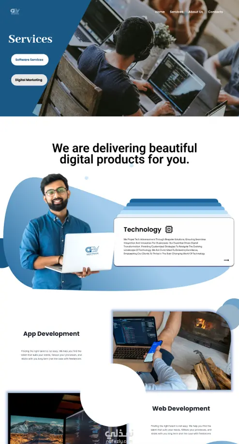 ركزت في التصميم على البساطة والتنظيم الجيد للأقسام مثل الصفحة الرئيسية، من نحن، الخدمات، الأعمال، آراء العملاء، والتواصل. استخدمت ألوانًا متناسقة وخطوطًا واضحة لخلق تجربة مستخدم مريحة وجذابة.