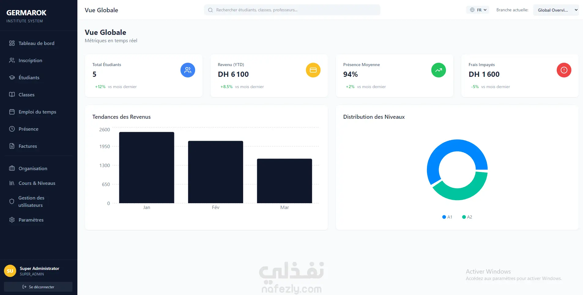 حل رقمي احترافي صُمّم خصيصًا لتلبية احتياجات معاهد اللغات الخاصة، يسهّل إدارة الطلبة، تتبّع المسار التعليمي، وتنظيم المدفوعات بكل دقة وشفافية. يُمكّن هذا التطبيق إدارة المعهد من رقمنة جميع العمليات الإدارية والبيداغوجية، وتحسين تجربة الطلبة والأساتذة في آنٍ واحد. أهم مميزات النظام: تسجيل الطلبة وإدارة الطلبات نظام تسجيل إلكتروني يتيح استقبال طلبات الانخراط، مراجعتها، قبولها أو إدارتها بسهولة من لوحة التحكم. تتبّع المسار التعليمي إمكانية متابعة تقدّم كل طالب حسب المستوى، الدورات، الحصص، والنتائج، مع سجل تعليمي واضح ومحدّث باستمرار. إدارة المدفوعات والفوترة تتبّع دقيق للمدفوعات، الأقساط، والفواتير، مع إشعارات تلقائية لتفادي التأخير وتحسين التدبير المالي. إدارة الأقسام والدورات تنظيم الدورات حسب اللغة والمستوى، توزيع الطلبة على الأقسام، وجدولة الحصص بكل مرونة. فضاء خاص للإدارة والأساتذة لوحة تحكم شاملة لإدارة الطلبة، الأساتذة، البرامج التعليمية، والتقارير الإحصائية. تقارير وتحليلات ذكية تقارير دقيقة حول الأداء التعليمي، عدد الطلبة، المداخيل، ونسب التقدّم لدعم اتخاذ القرار. نظام آمن وسهل الاستخدام واجهة بسيطة، آمنة، وقابلة للتخصيص حسب احتياجات كل معهد. .