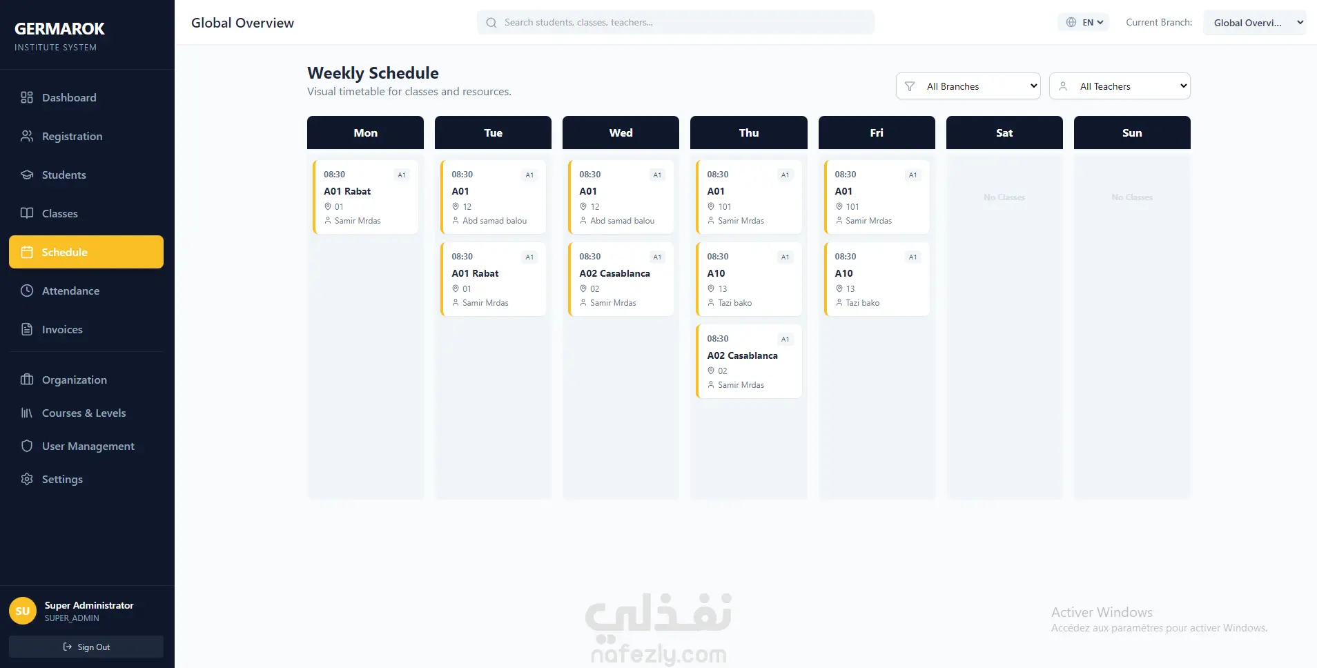 نظام ويب متكامل لإدارة معاهد اللغات