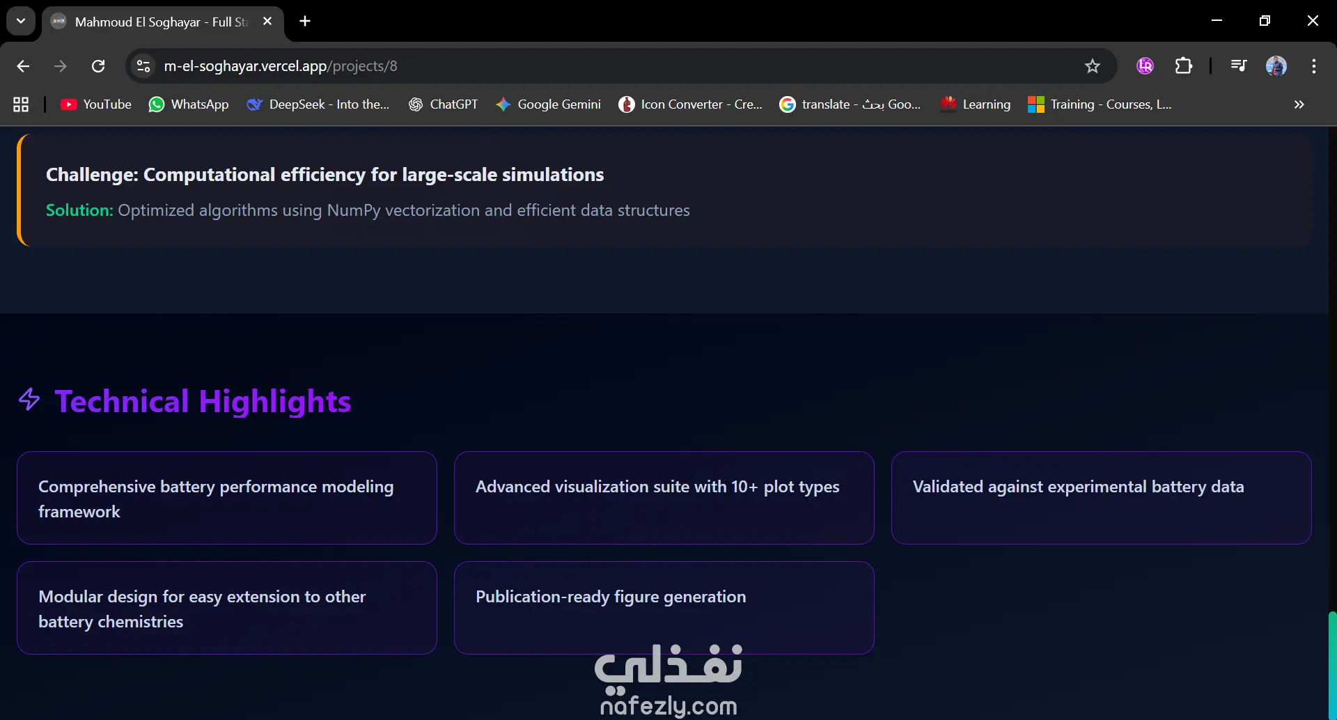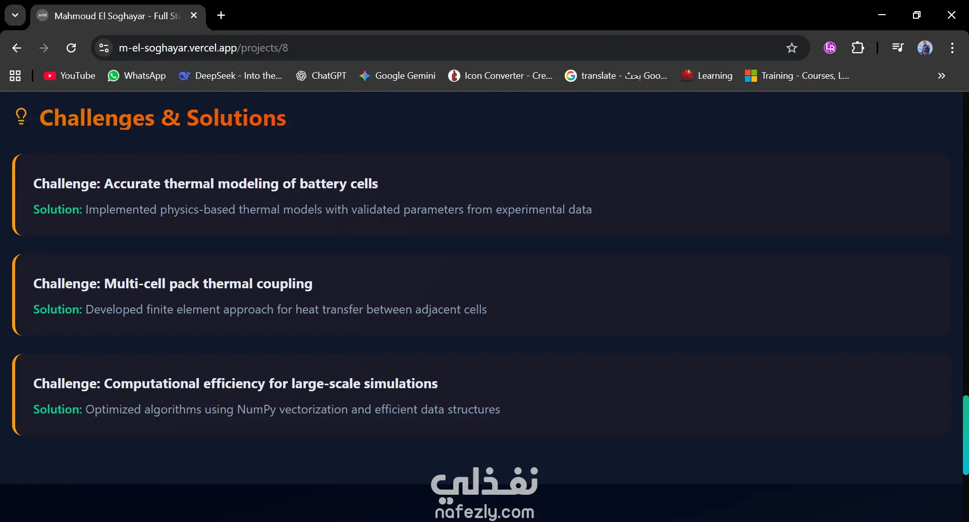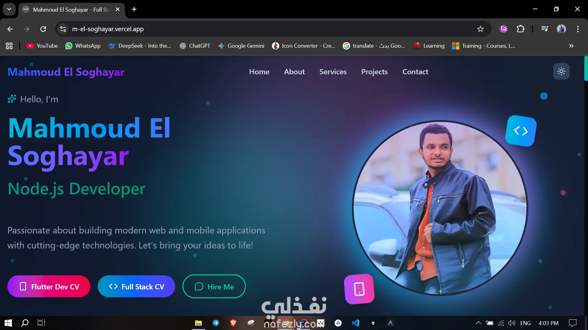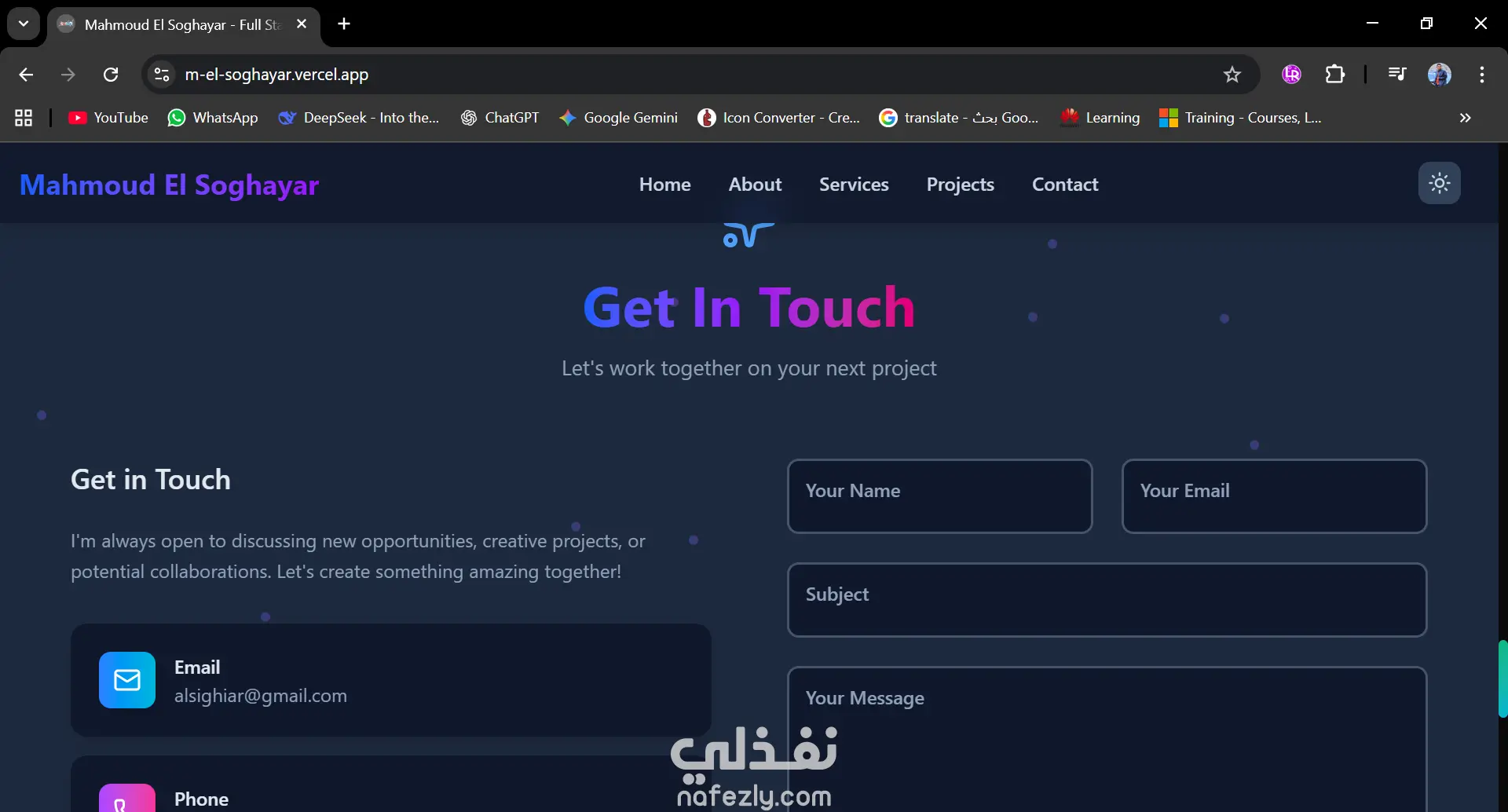 قمت بتصميم وتطوير موقع ويب متكامل ليكون معرض أعمال شخصي يستعرض المشاريع والمهارات بأسلوب عصري وجذاب. تم التركيز في هذا المشروع على الجمع بين الأداء العالي (Performance) وتجربة المستخدم السلسة، مع ضمان توافق كامل مع محركات البحث (SEO). باستخدام قوة Next.js في الرندرة من جهة الخادم (SSR) ومرونة Tailwind CSS في التصميم، نجحت في بناء منصة سريعة جداً توفر أفضل انطباع أول للزوار والعملاء المحتملين. أبرز المميزات والخصائص: سرعة صاروخية: تم استغلال ميزات Next.js لتحميل الصفحات بشكل فوري تقريباً. تصميم متجاوب (Responsive): الموقع متوافق تماماً مع جميع أحجام الشاشات (موبايل، تابلت، ديسكتوب). تحسين محركات البحث (SEO Optimized): استخدام بنية كود نظيفة ووسوم Meta Tags لضمان سهولة الأرشفة والظهور. واجهة مستخدم عصرية: تصميم "Minimalist" يركز على المحتوى والمشاريع، تم بناؤه من الصفر باستخدام Tailwind CSS. دعم الوضع الليلي (Dark Mode): إضافة خاصية التبديل بين الوضعين لراحة المستخدم. مكونات قابلة لإعادة الاستخدام: كتابة كود منظم يعتمد على React Components لتسهيل التطوير المستقبلي. التقنيات المستخدمة (Tech Stack): Frontend Framework: Next.js (React). Styling: Tailwind CSS (للتنسيق المخصص والاحترافي). Animations: Framer Motion Deployment: Vercel .